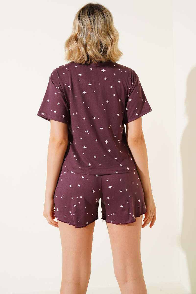 Yıldız Baskılı Kısa Kol Şortlu Pijama Takım Magenta