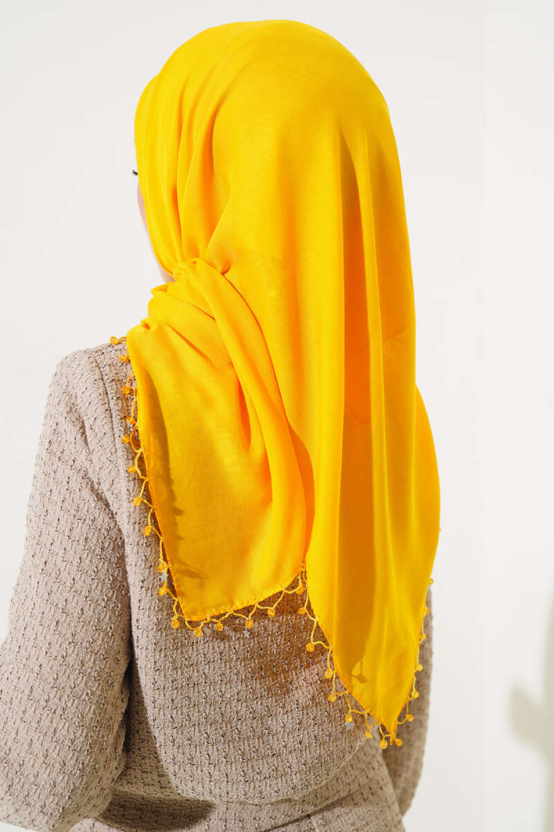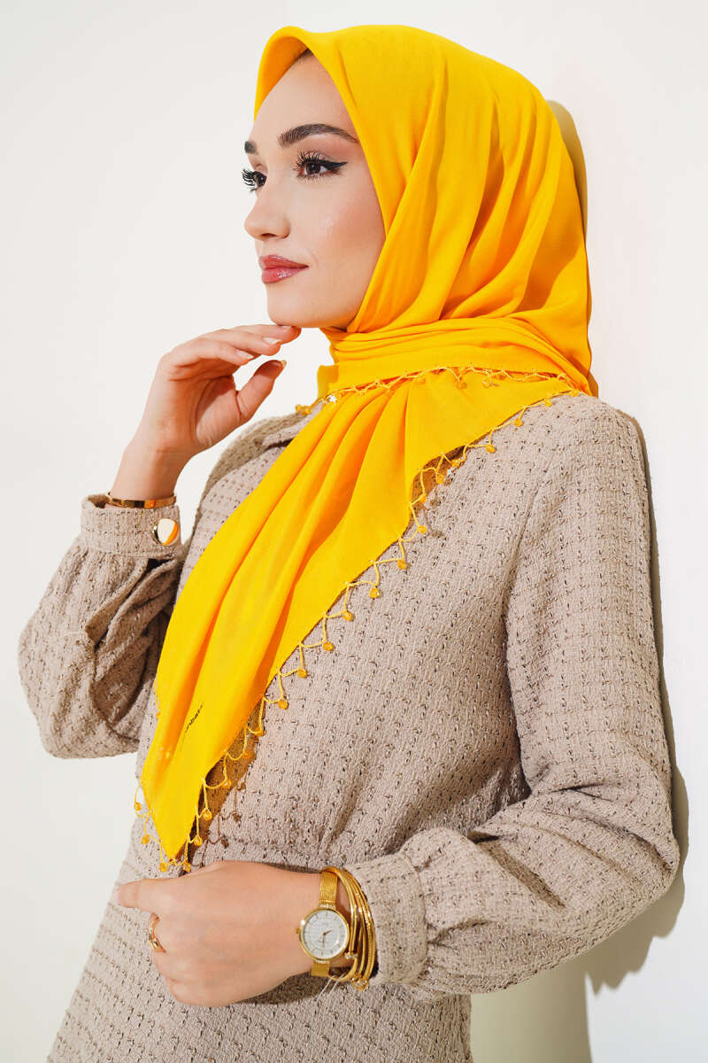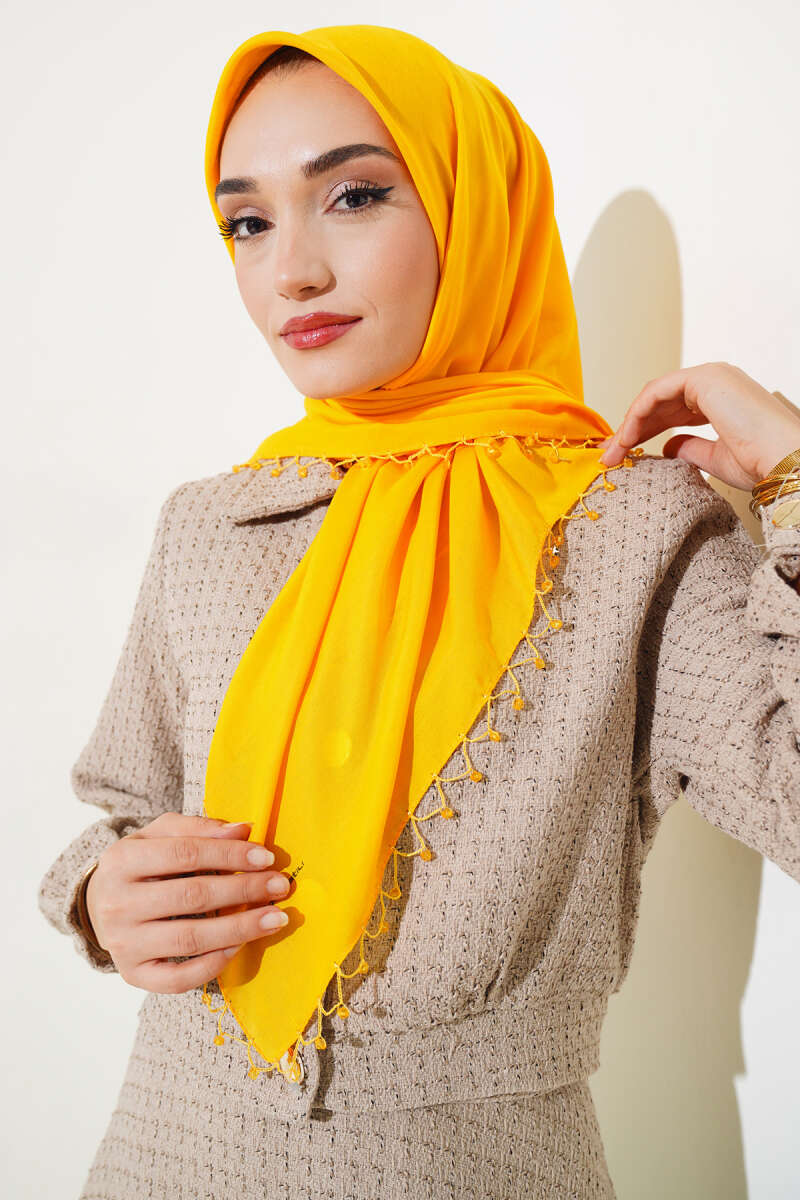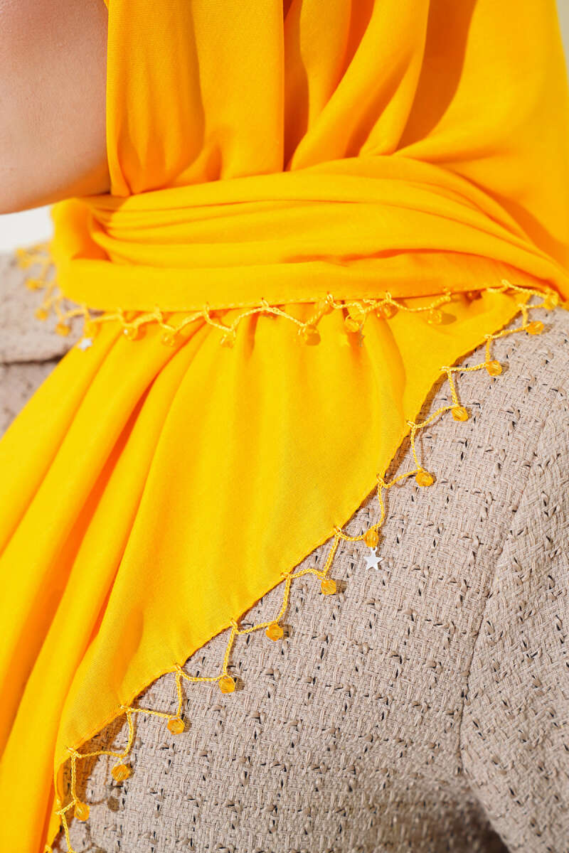 Yıldız Boncuklu Yazma Eşarp Hardal