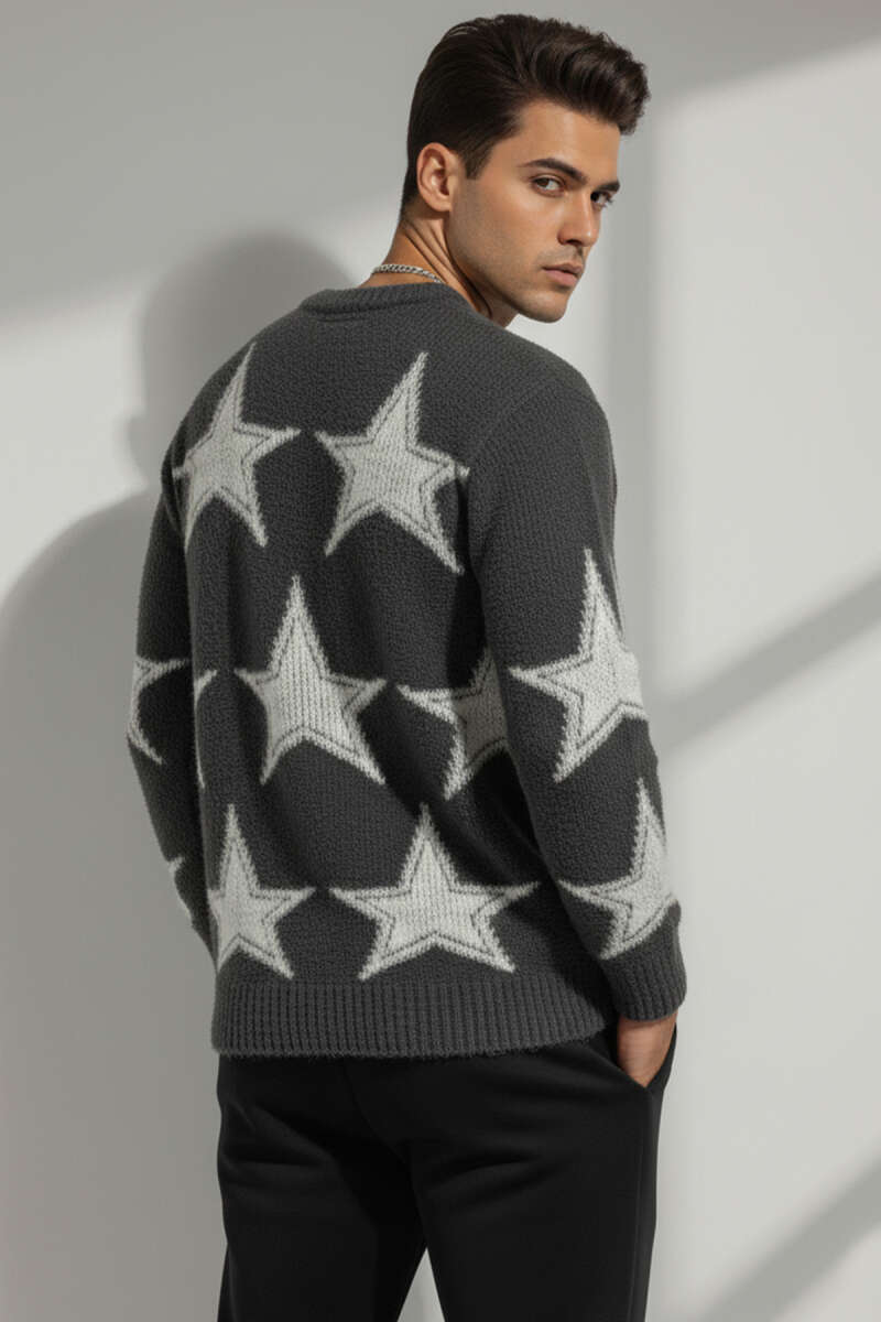 Yıldız Desen Triko Örme Erkek Kazak Kemik