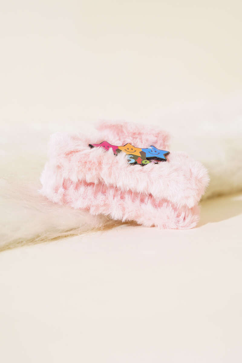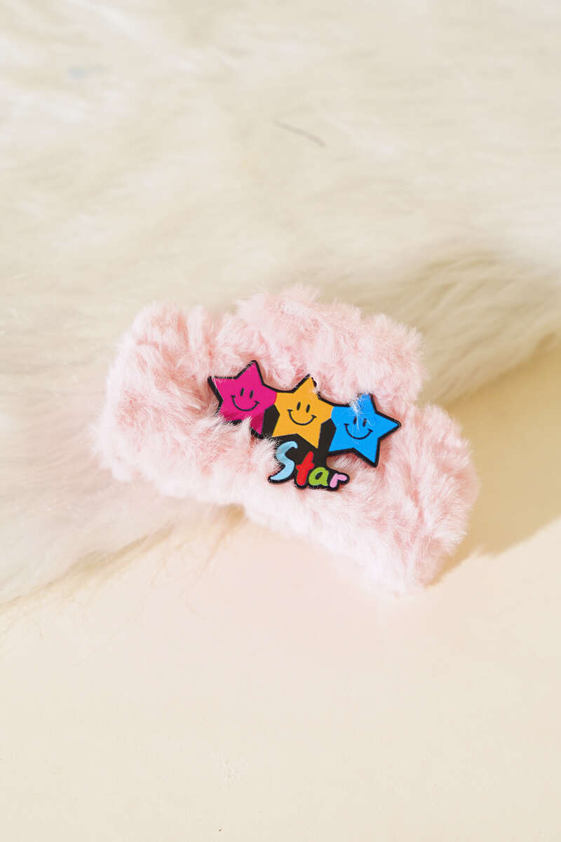 Yıldız Figürlü Peluş Mandal Toka Pembe