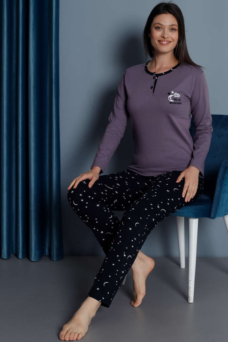 Yıldız Nakışlı Uzun Kol Pijama Takımı Leylak