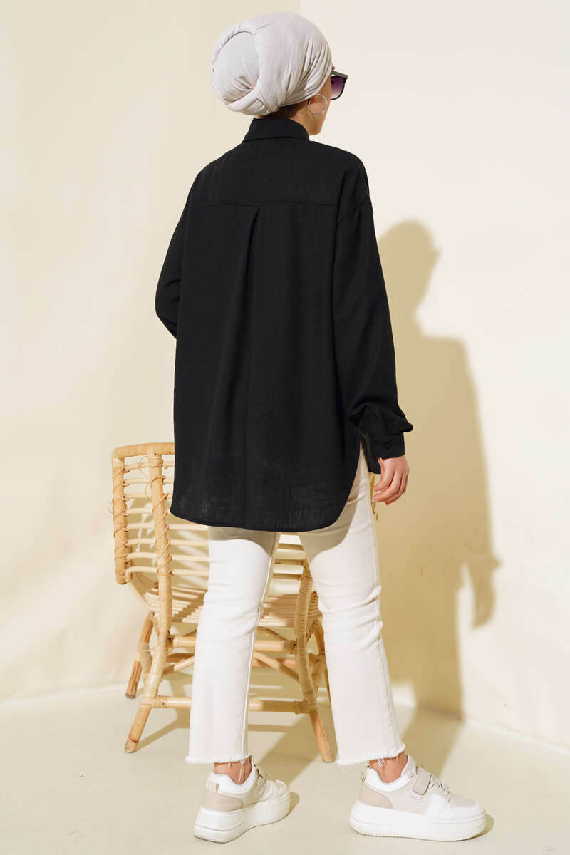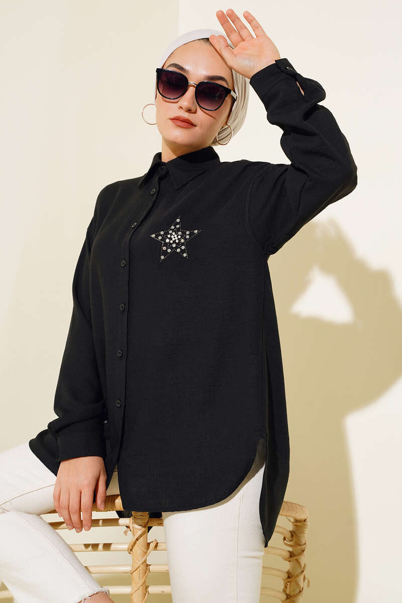 Yıldız Taş Detaylı Salaş Gömlek Siyah