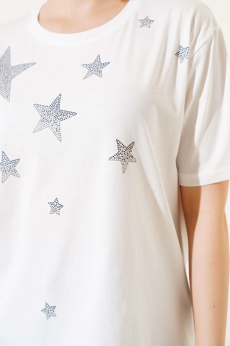 Yıldız Taş Süslemeli T-shirt Ekru