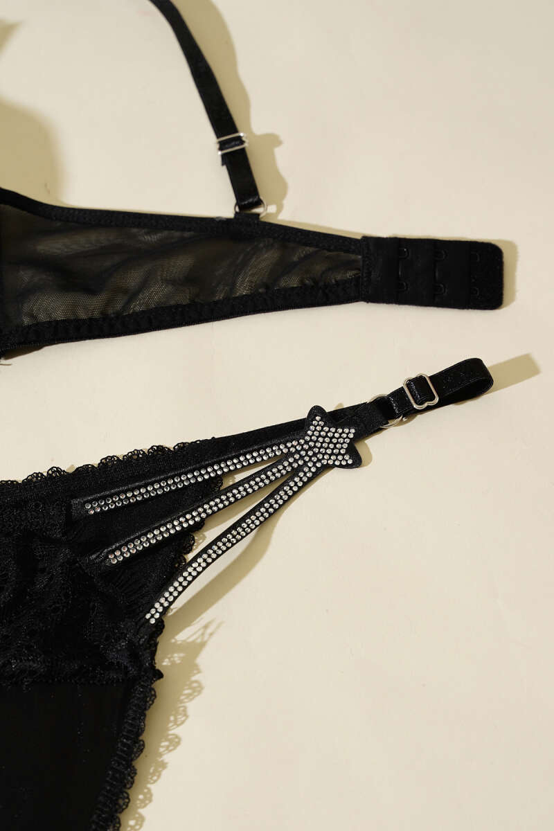 Yıldız Taşlı Sütyen Takım Siyah