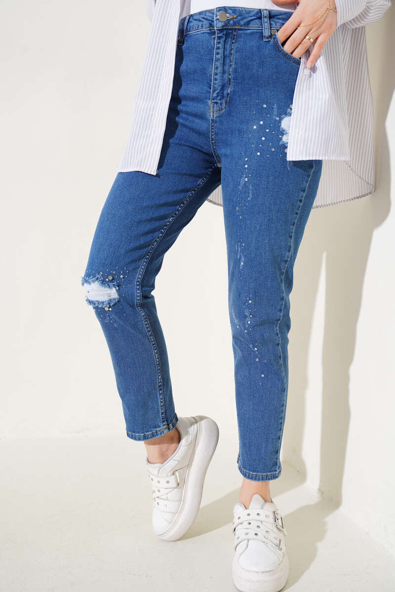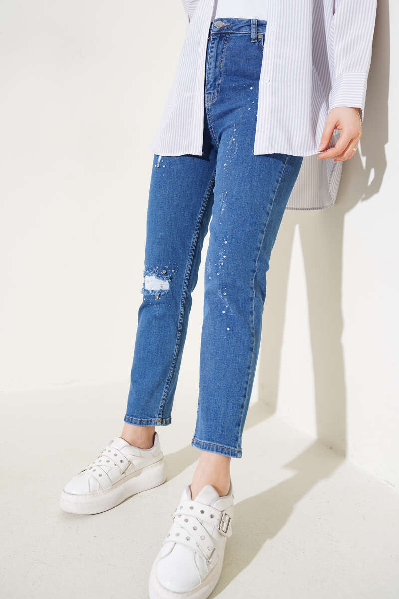 Yırtık Detaylı Taşlı Dar Paça Kot Pantolon Kot