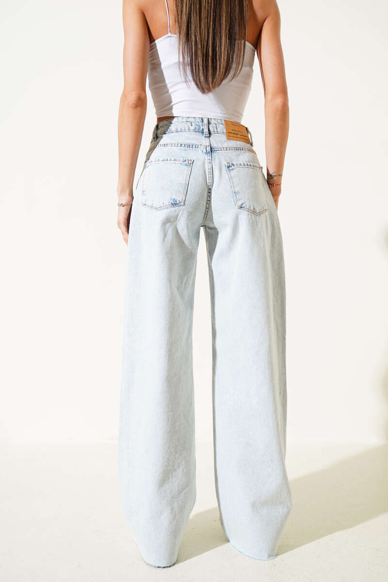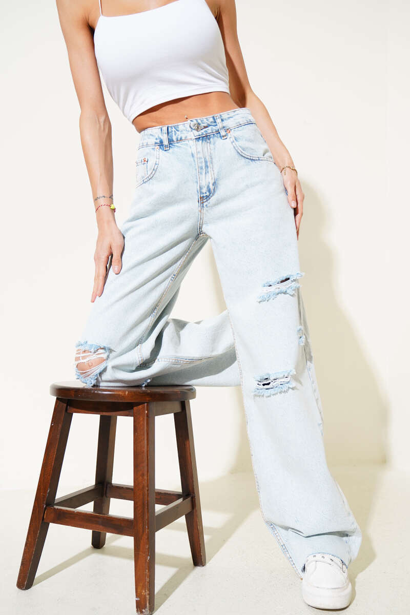 Yırtık Palazzo Kot Pantolon Buz Mavisi
