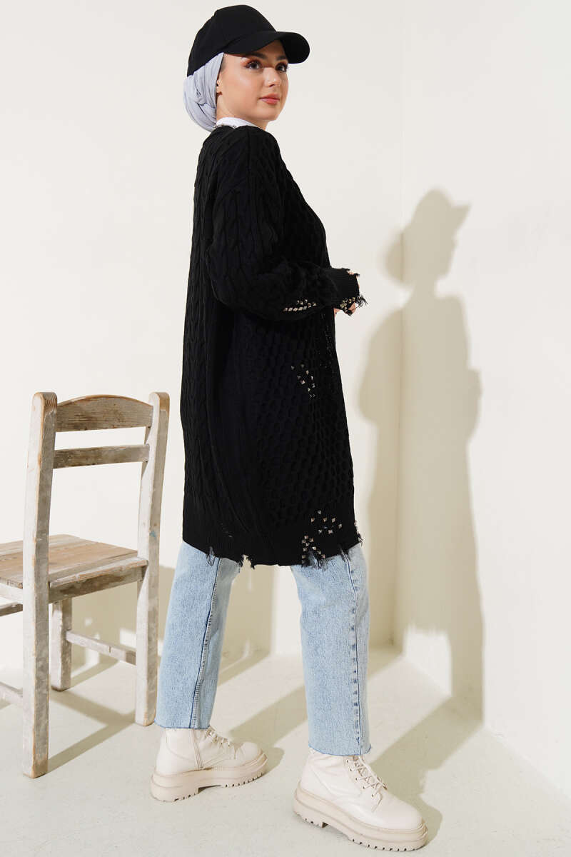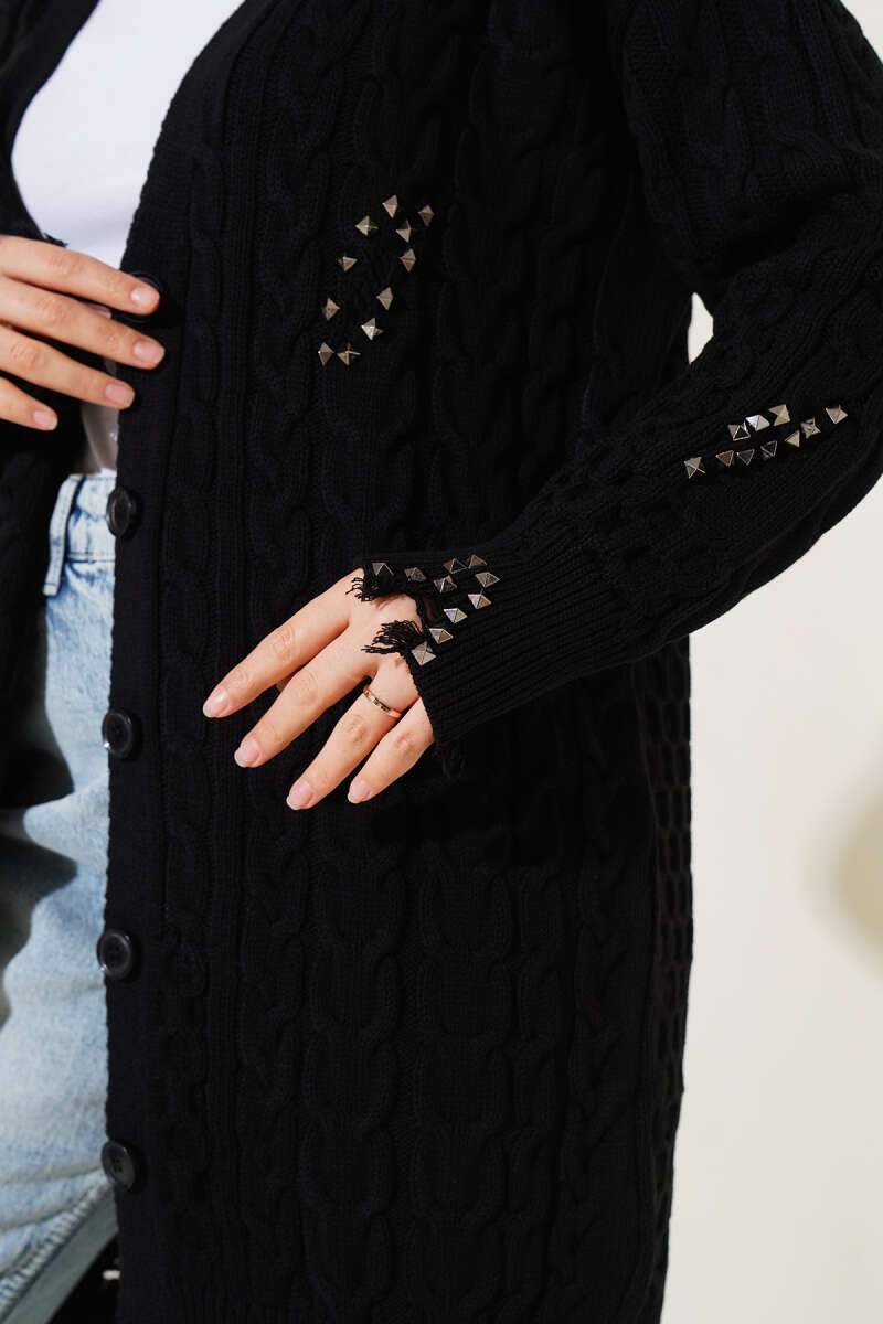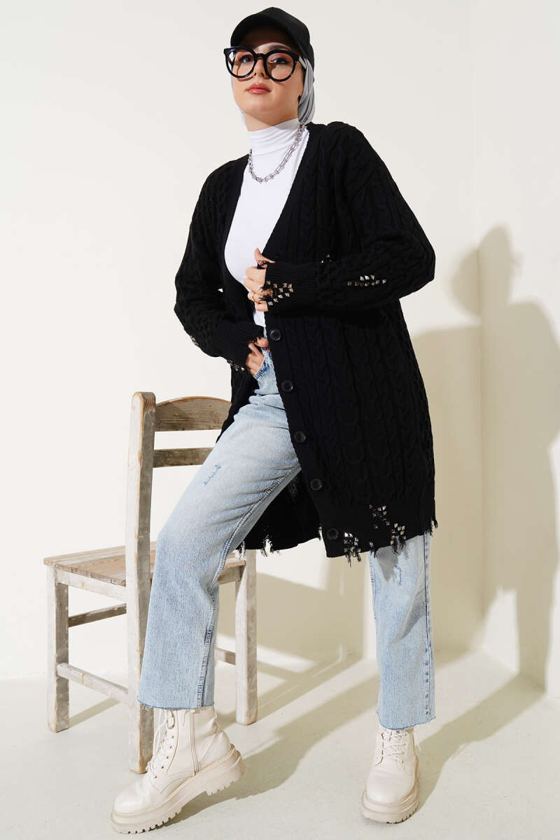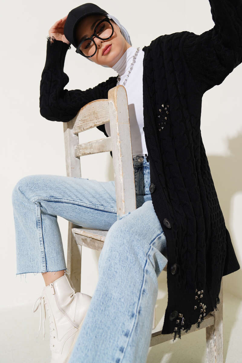 Dalmaçya Desen İncili Kısa Triko Hırka Siyah