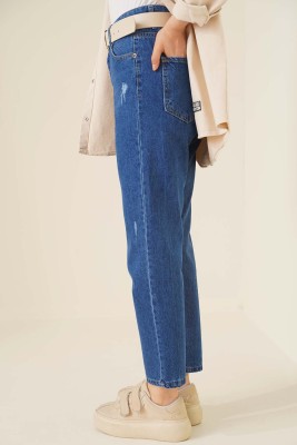 Yeni sezon model pantolonumuz boyfriendir. Pantolonumuz yüksek beldir. Yırtıklarıyla farklı tarza sahip pantolonumuz düğmeli ve fermuarlı model olan pantolonumuzun beş adet kemer köprüsü bulunmaktadır.