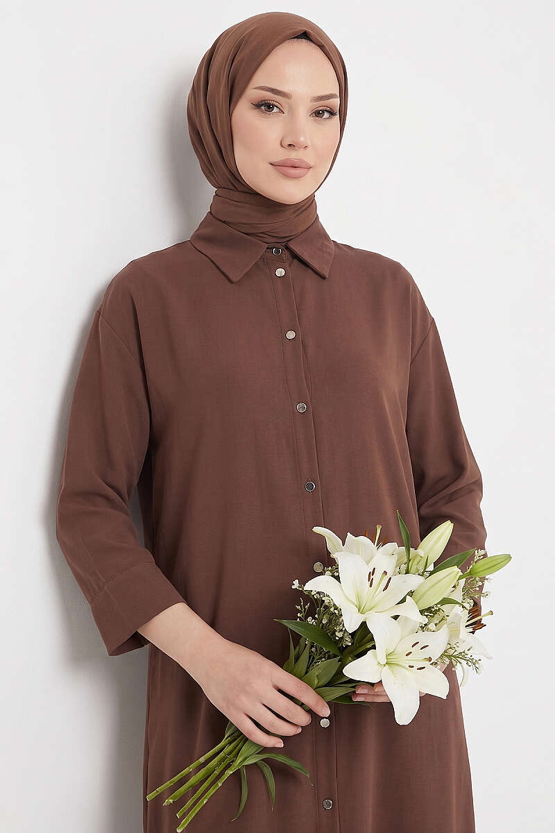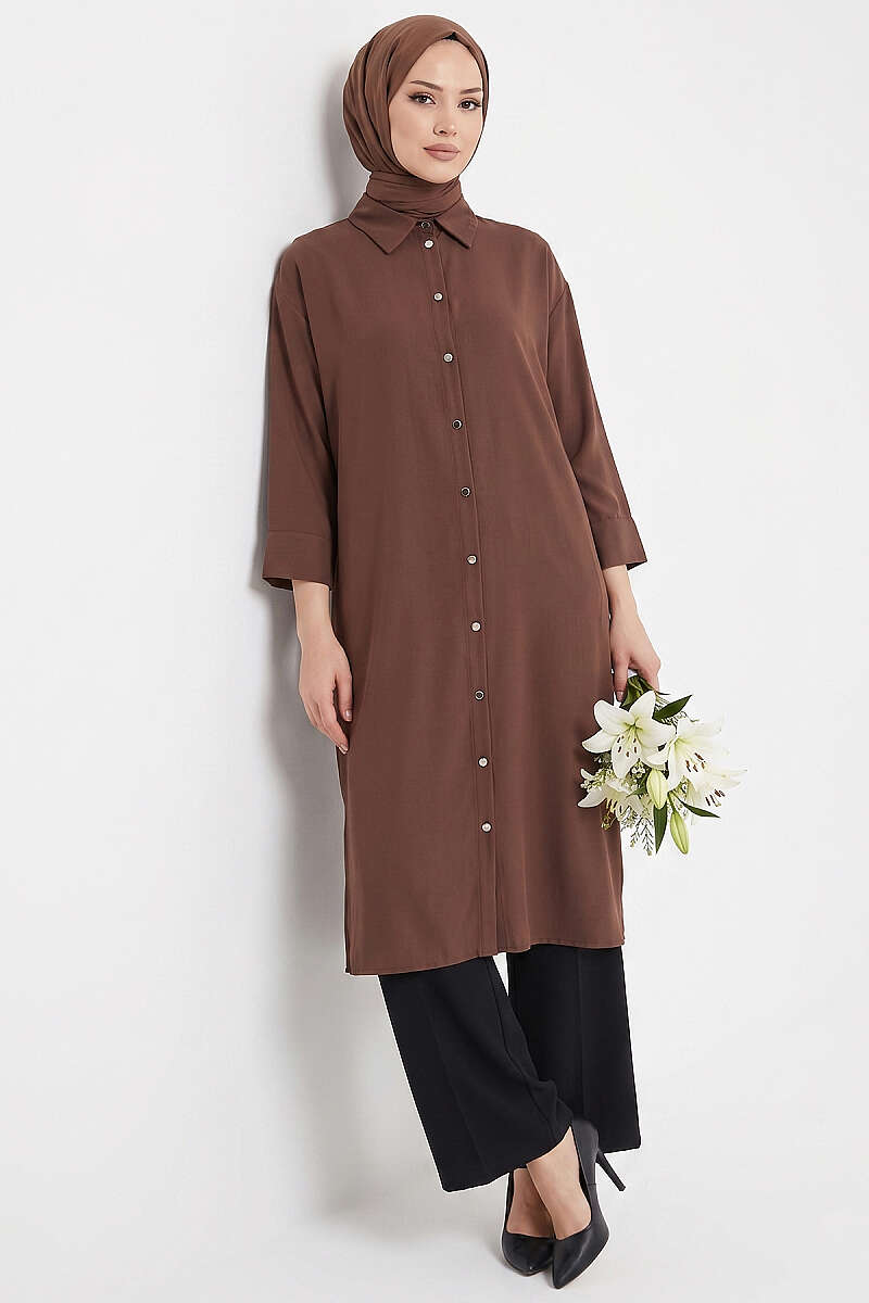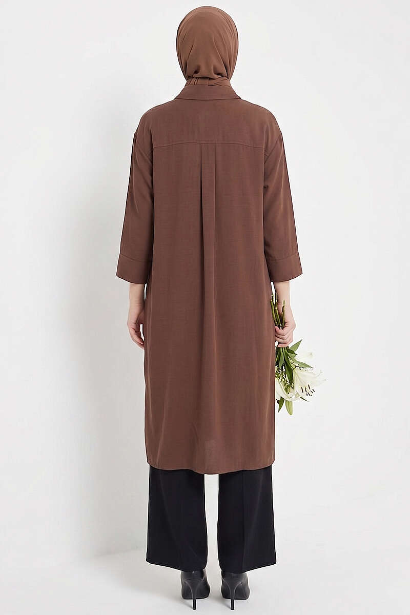 Yırtmaç Detaylı Uzun Tunik Kahve