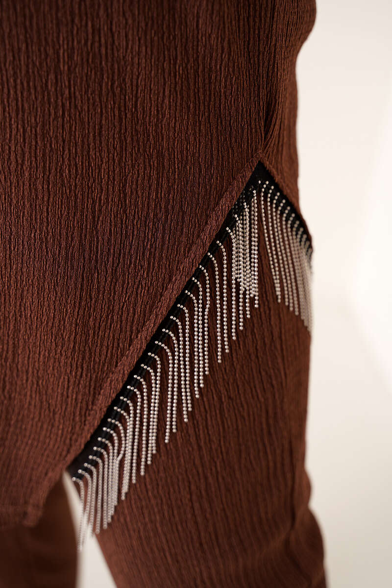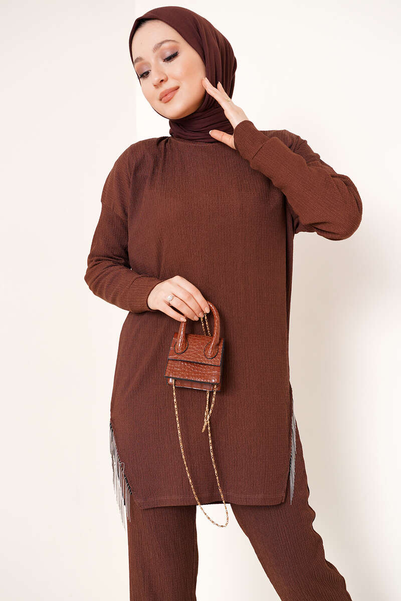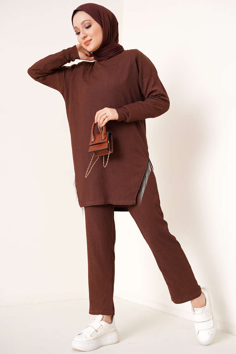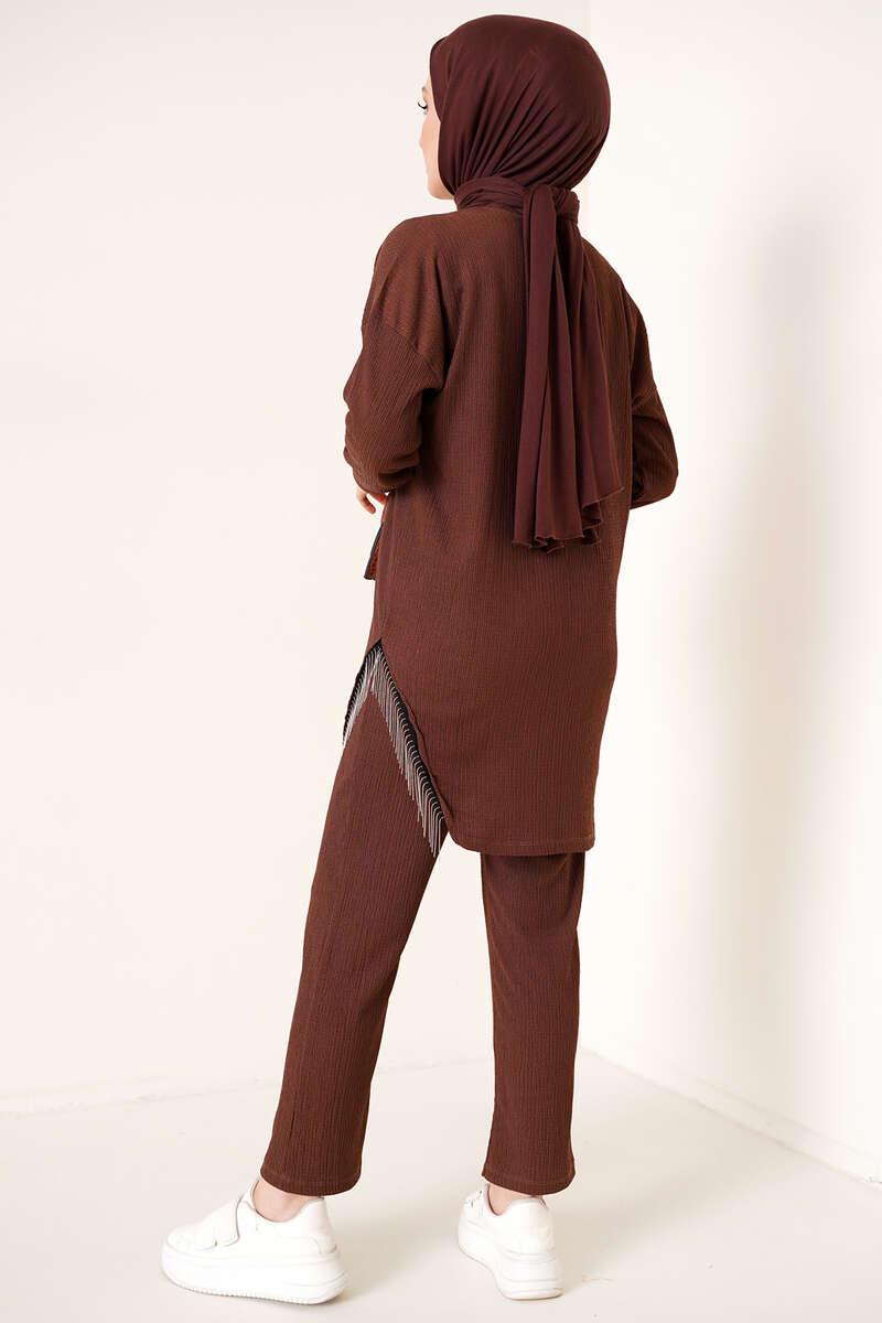 Yırtmaçları Zincir Püsküllü Bürümcük İkili Takım Kahve
