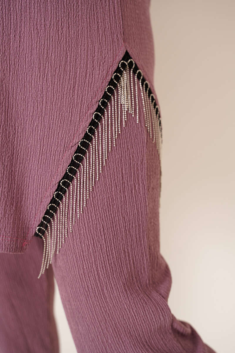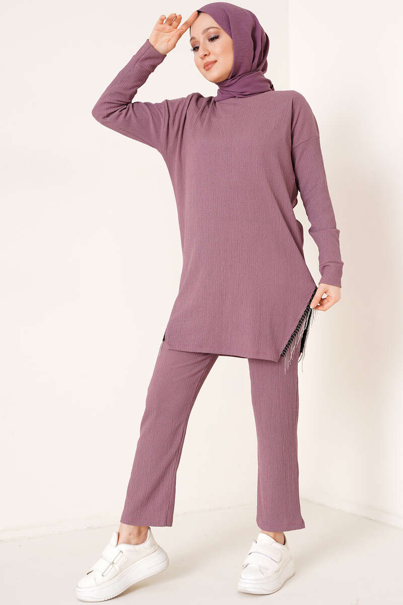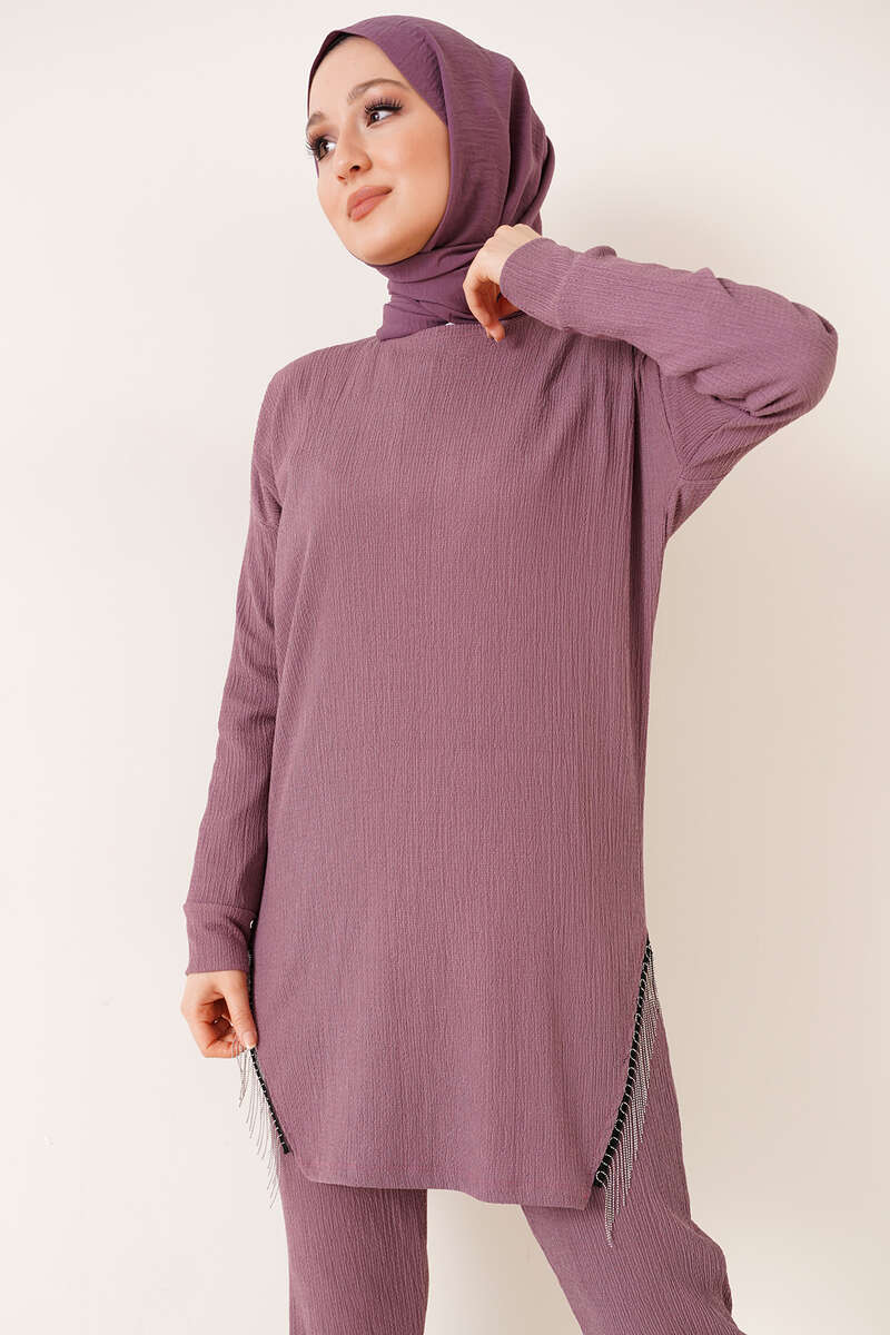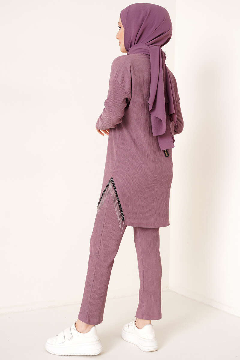 Yırtmaçları Zincir Püsküllü Bürümcük İkili Takım Magenta