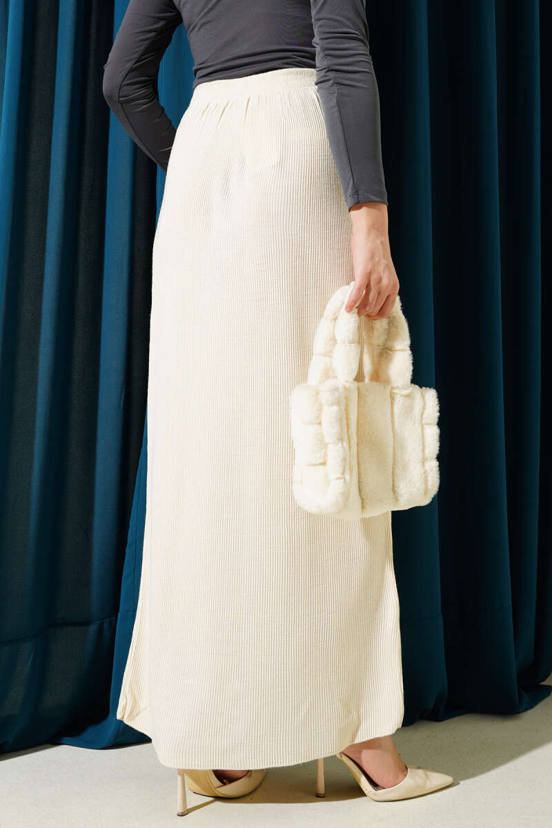 Yırtmaçlı Bel Lastikli Triko Etek Siyah