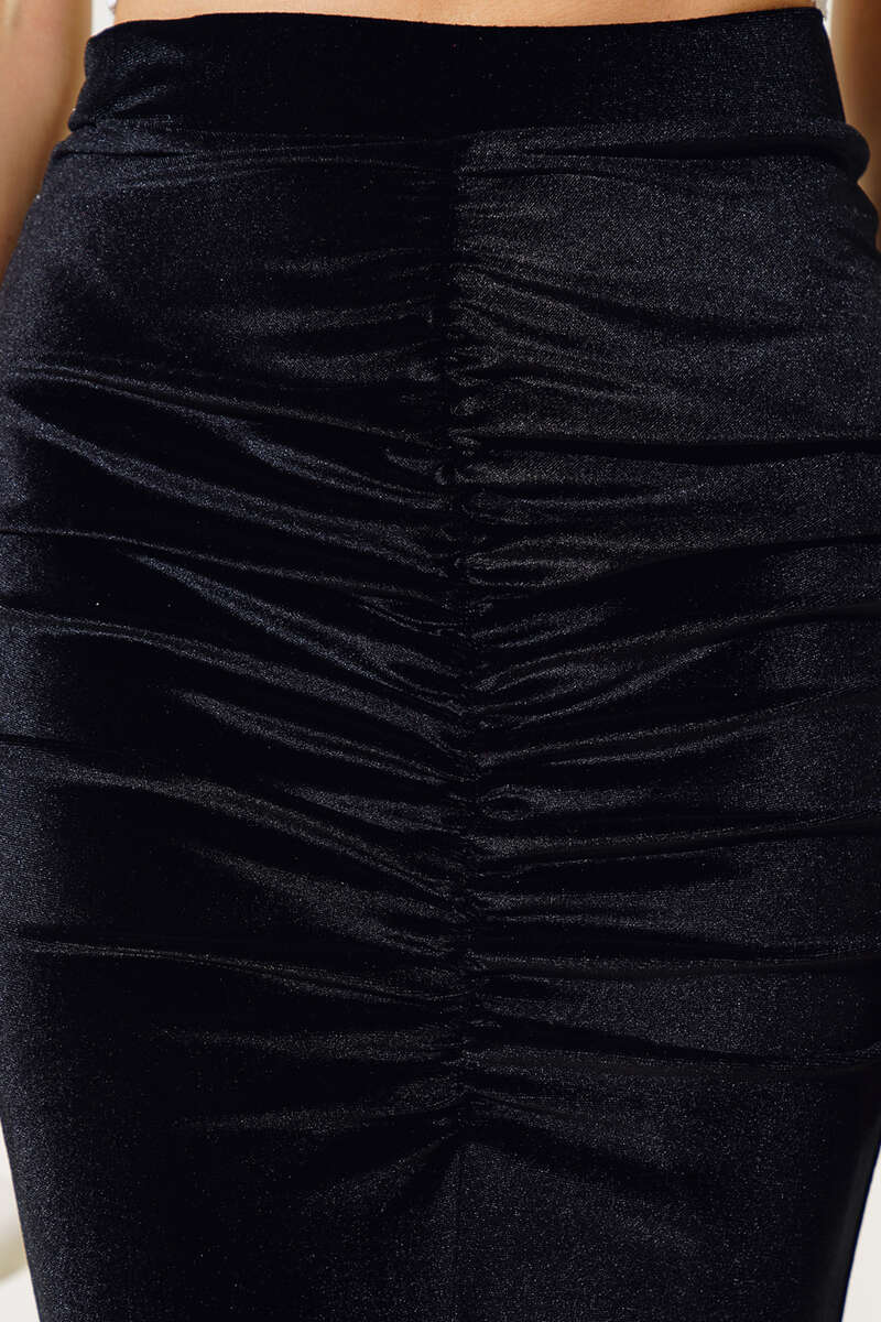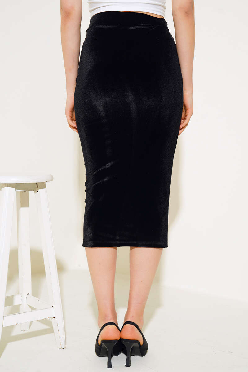 Yeni sezon eteğimiz sizlerle beraber. Kadife eteğimizin önü büzgülüdür. Yırtmaçlı model olan eteğimiz kadife kumaştır. Kombinlerinizin yıldız parçası olan kadife eteğimizi çok seveceksiniz.