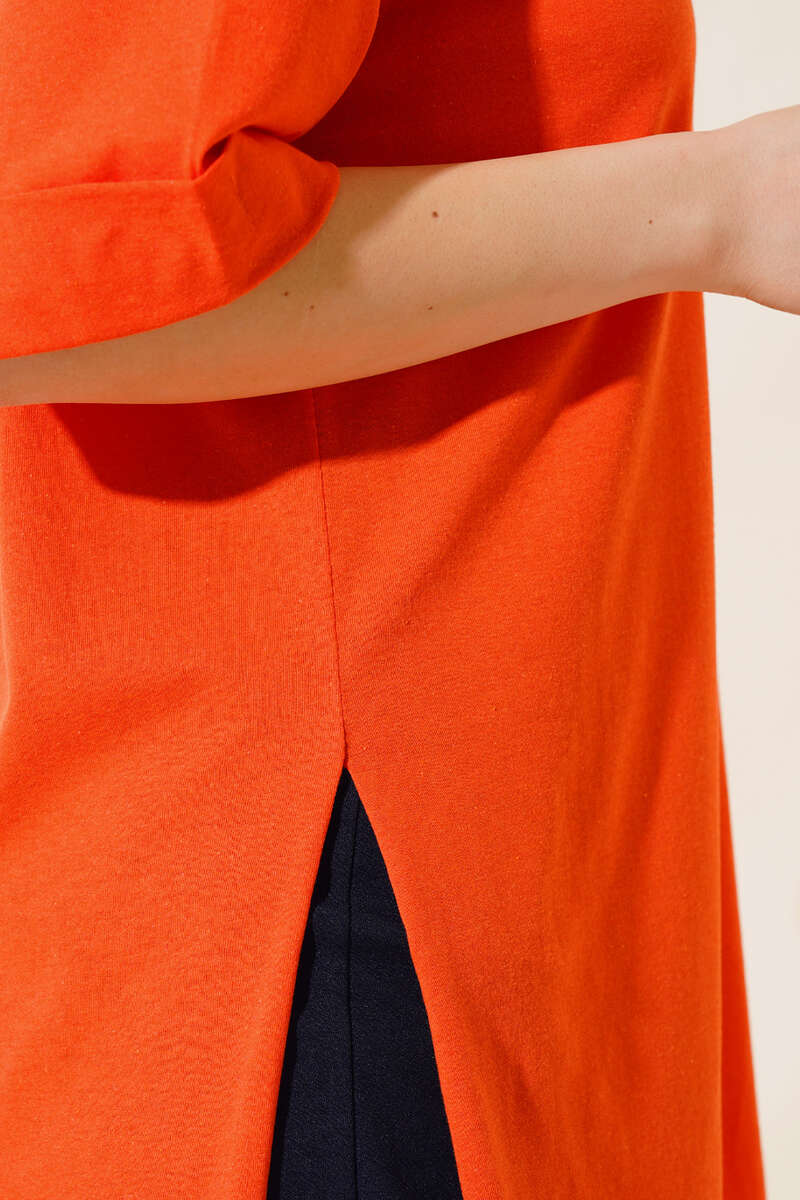 Yırtmaçlı Duble Kol T-shirt Oranj