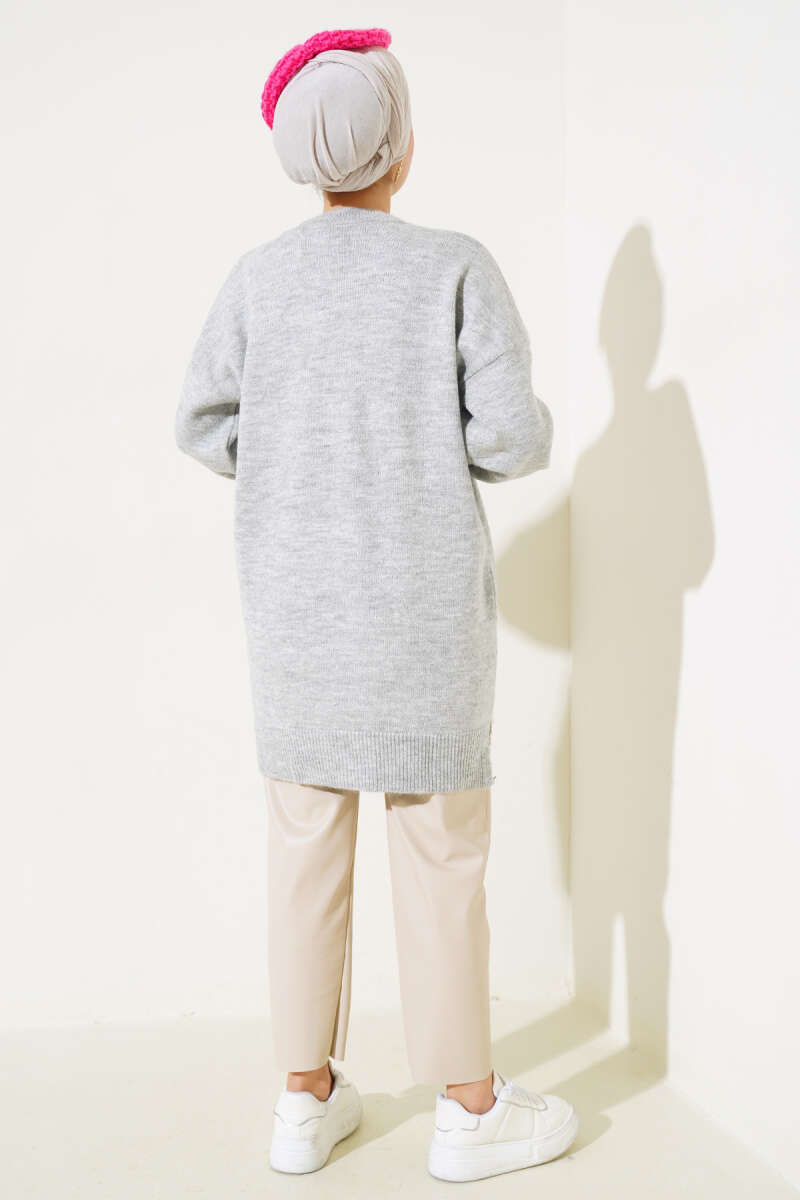 Serpme Taşlı Çizgili Sakallı Kazak Kahve