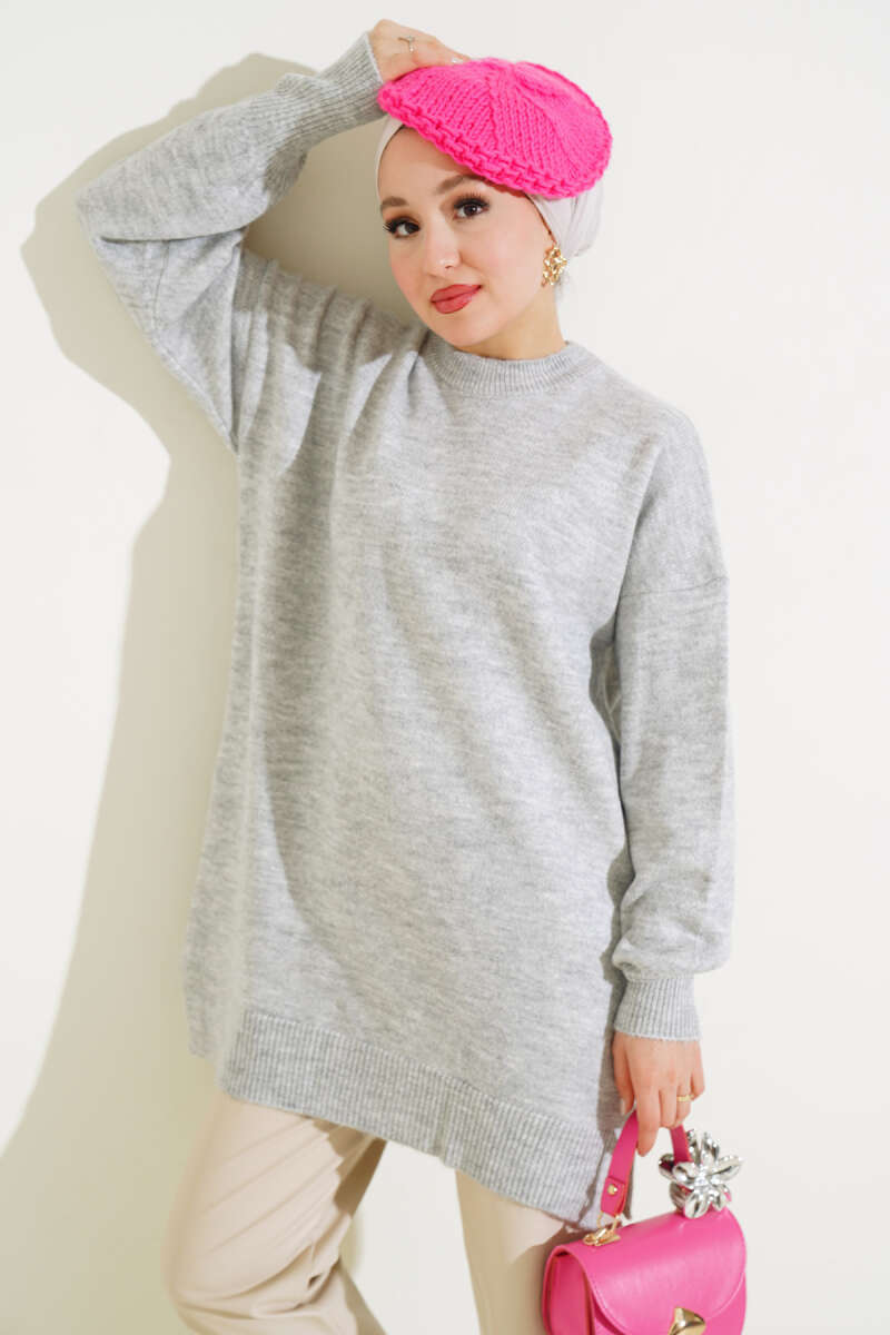 Çizgi Baklava Desen Triko Tunik Zümrüt