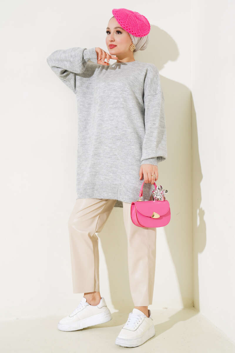 Çizgi Baklava Desen Triko Tunik Fıstık Yeşili