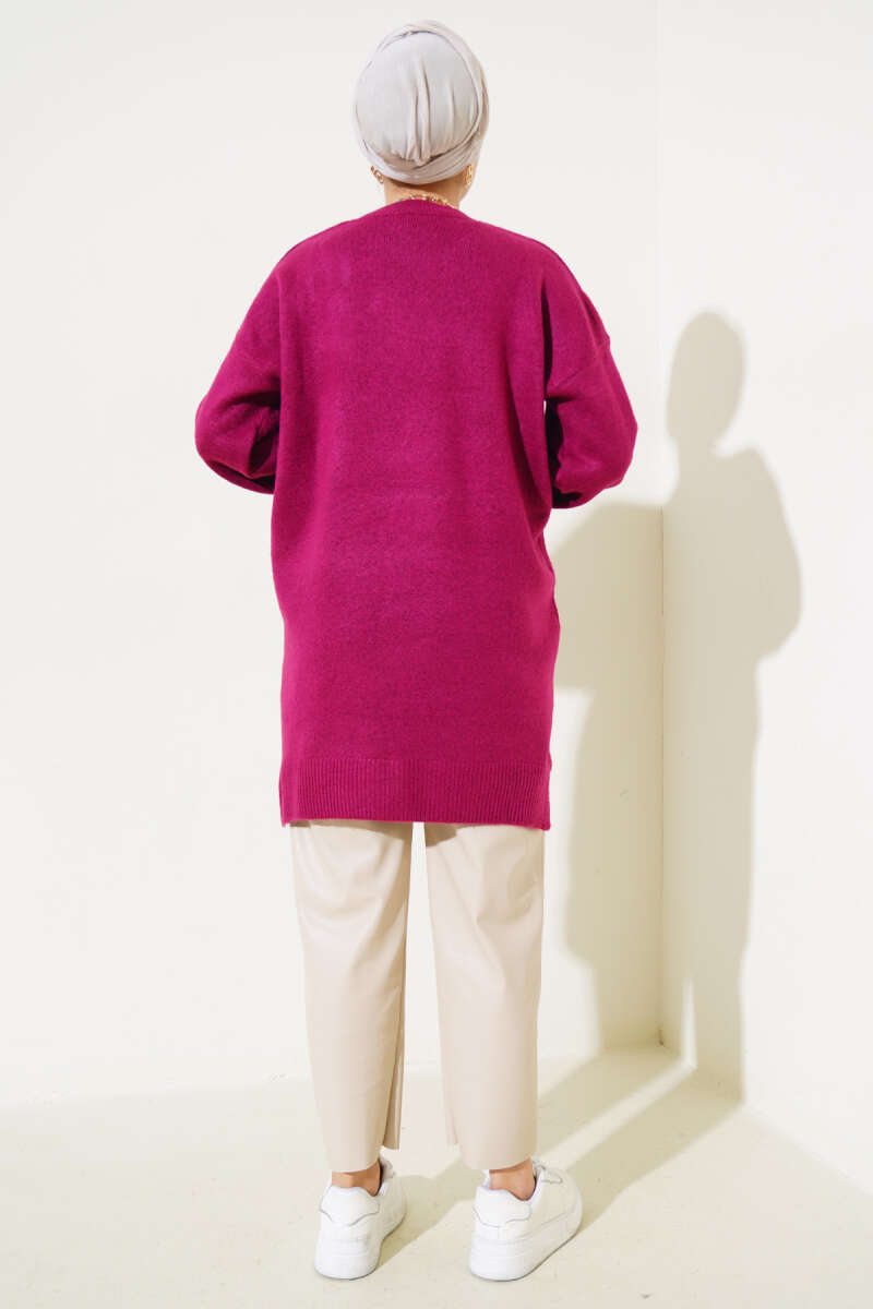 Basic Çift Cepli Uzun Triko Hırka Bej