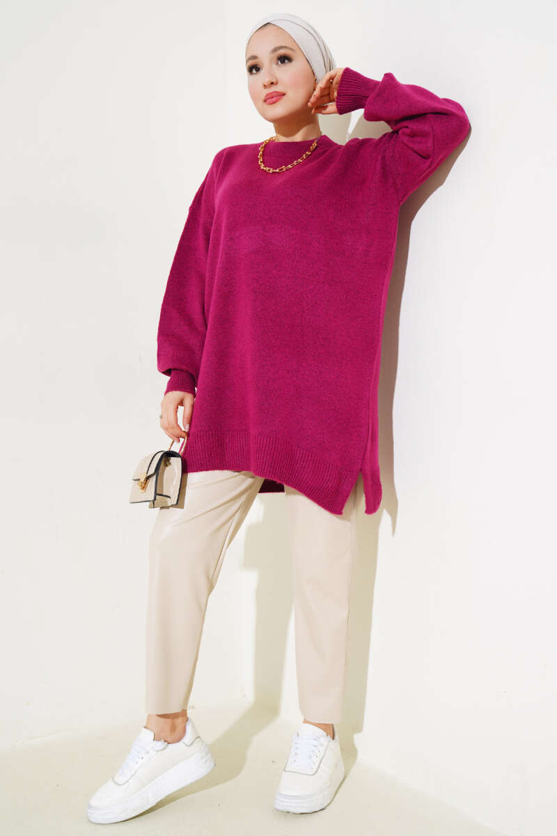 Çizgi Baklava Desen Triko Tunik Zümrüt