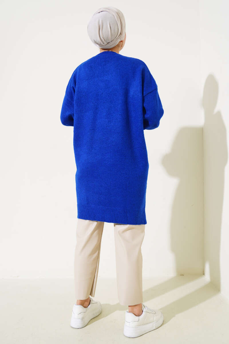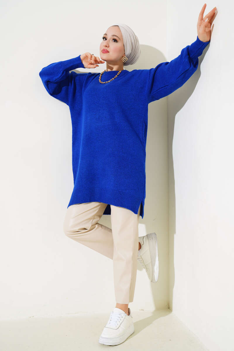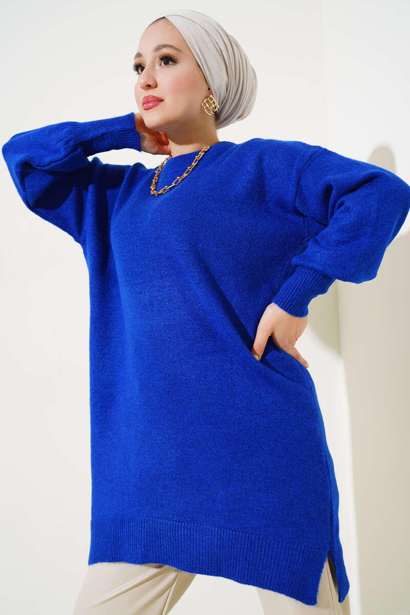 Yırtmaçlı Düz Yumoş Triko Tunik Saks