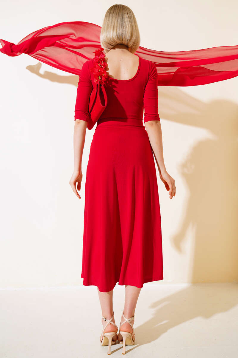 Yırtmaçlı Etekli İkili Takım Kırmızı