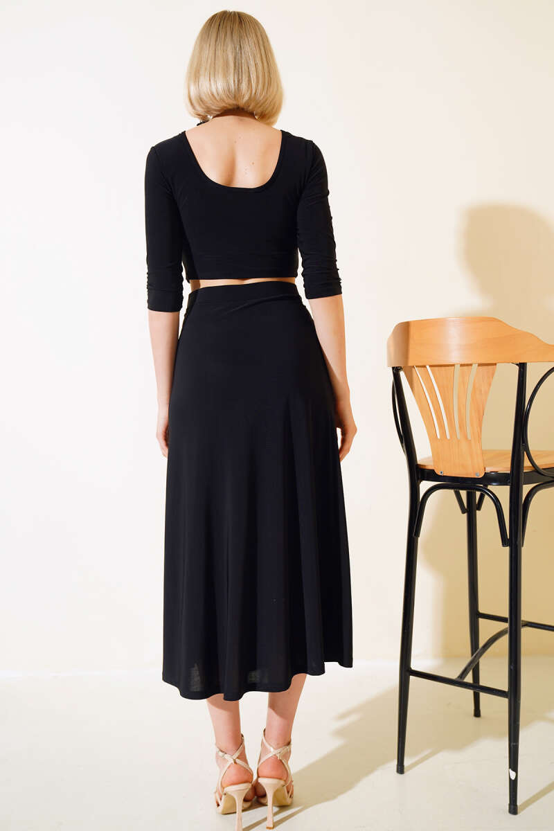 Çizgili Salaş Yarasa Kol Gömlek Siyah