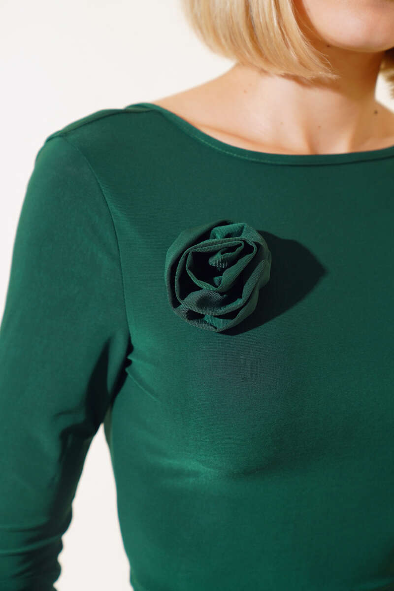 Yarım Fermuarlı Şerit Detaylı Triko İkili Takım Zümrüt