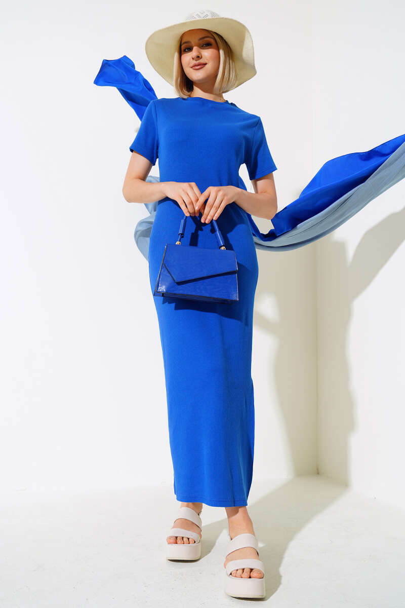 Yırtmaçlı Kaşkorse Elbise Siyah