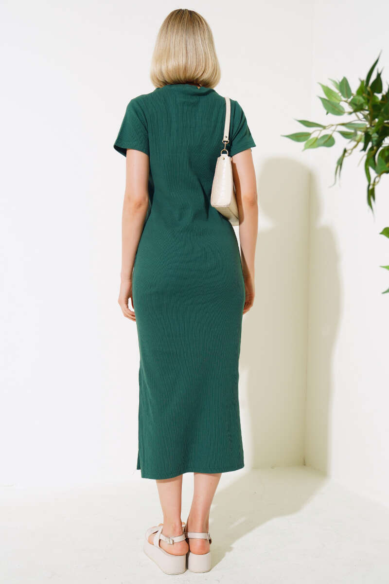 Degaje Yaka Simli Abiye Elbise Yeşil