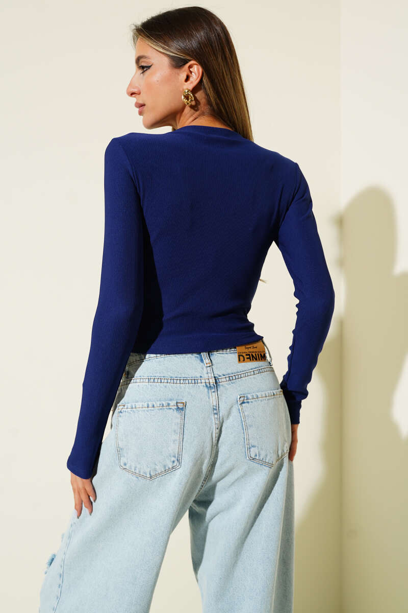 Yırtmaçlı Kaşkorse Uzun Kol Bluz Lacivert