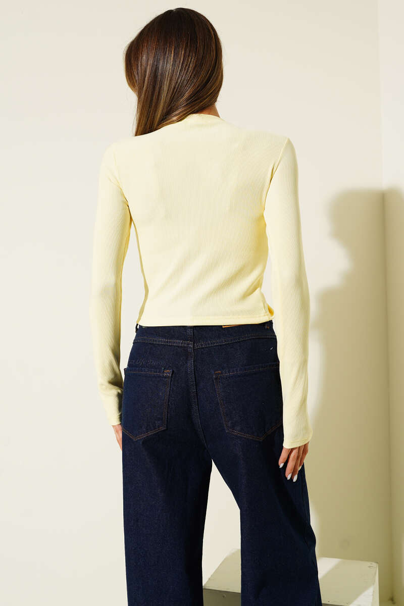 Yırtmaçlı Kaşkorse Uzun Kol Bluz Sarı