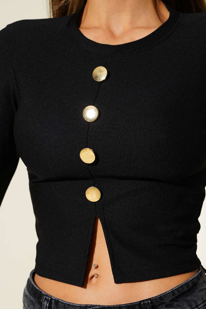 Yırtmaçlı Kaşkorse Uzun Kol Bluz Siyah