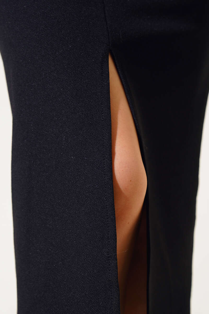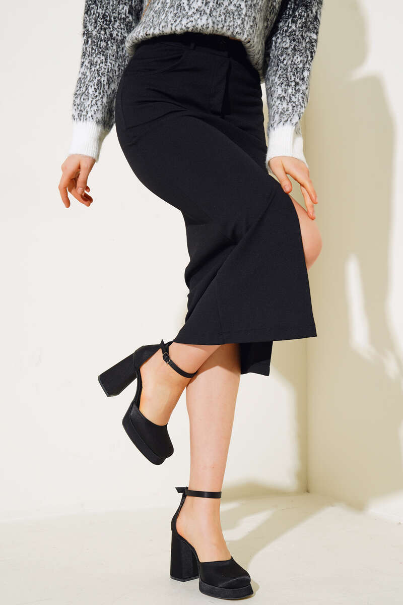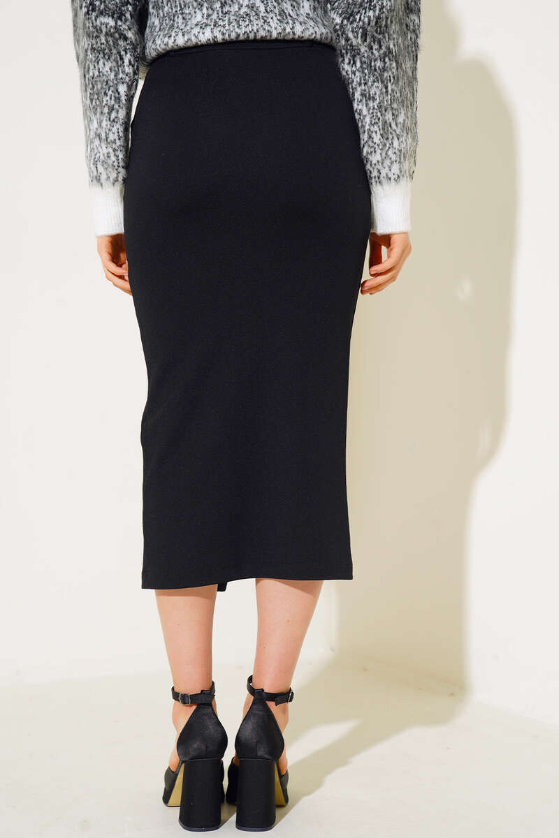 Yırtmaçlı Midi Etek Siyah