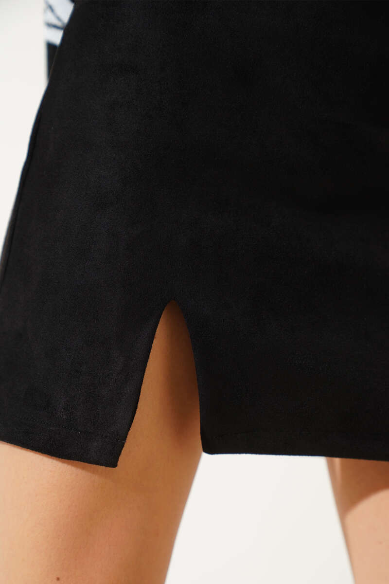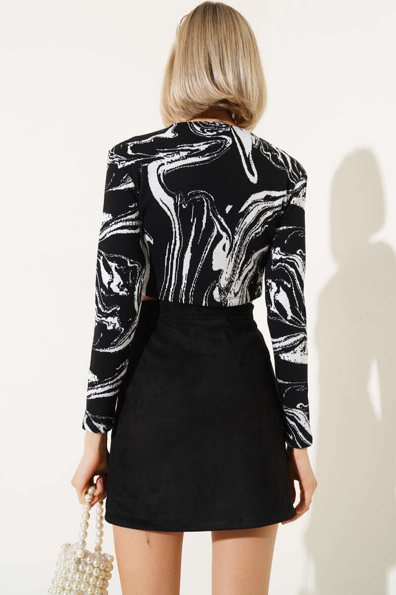 Peluş Yaka Kemerli Kaşe Panço Siyah