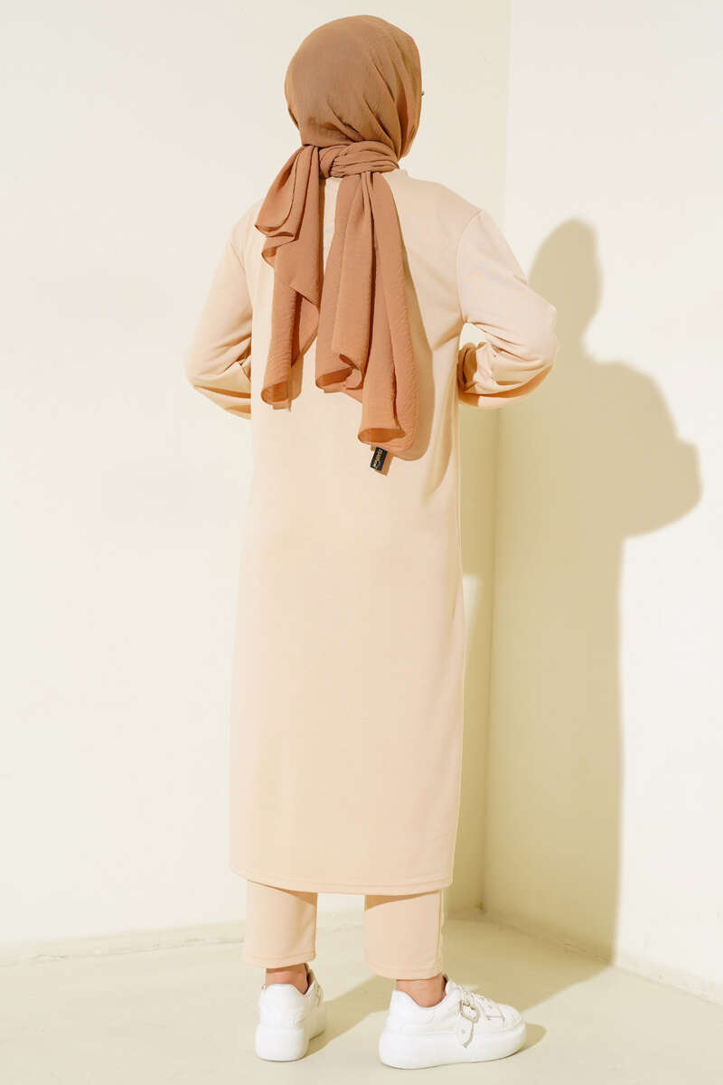 Yeni sezon ikili takımımız sportif tarzıyla sezonun favorileri arasında yerini alacaktır. Tuniğimizin etek ucu yanlardan yırtmaçlıdır. Kol bilekleri lastiklidir. Düşük omuzludur. Tuniğimiz uzun boydur. Pantolonumuzun beli lastiklidir. Rahat ve sportif olan modelimiz dolaplarınızda yerlerini beklemektedir.