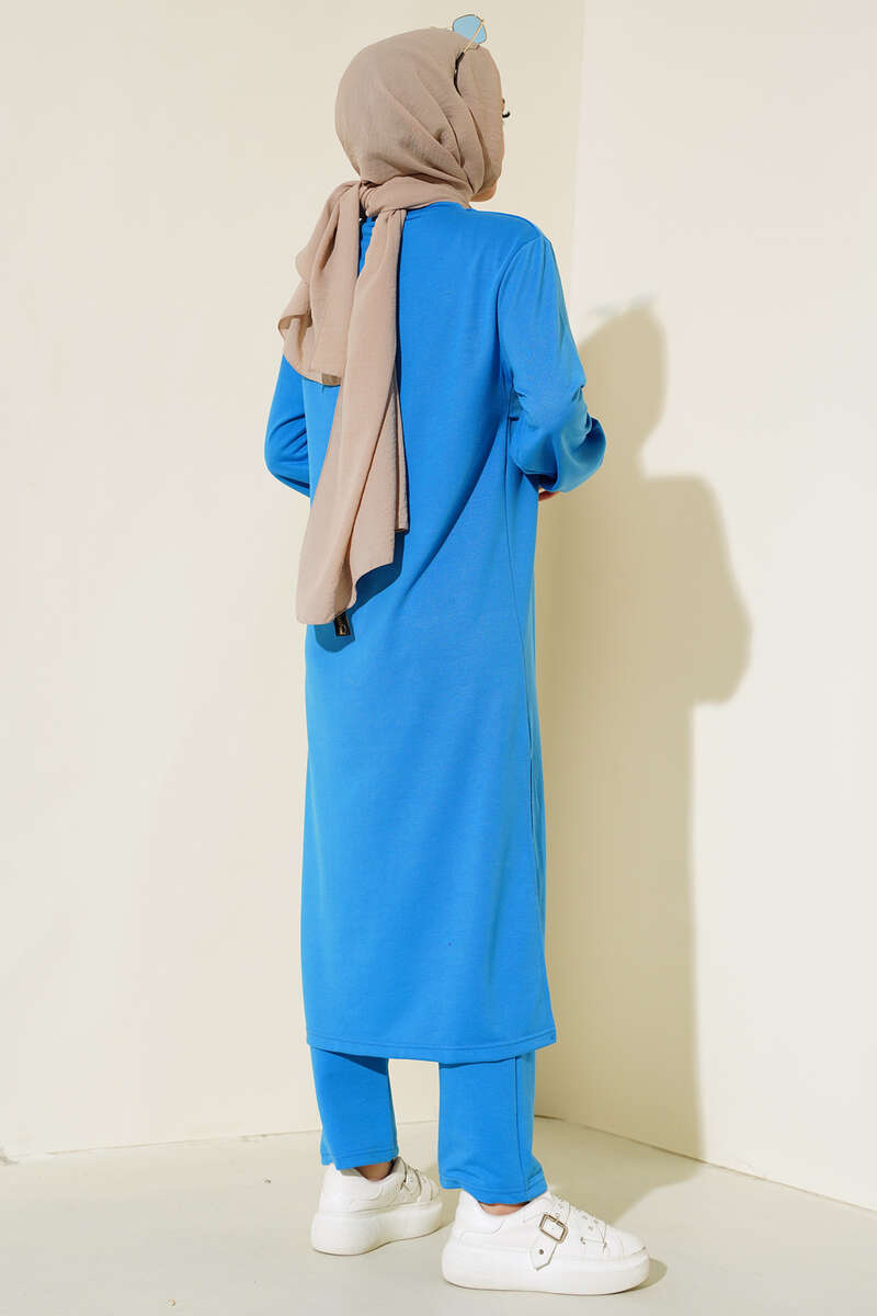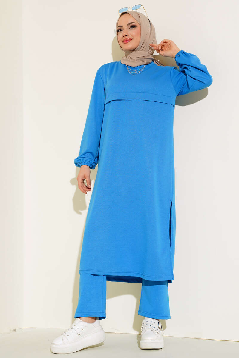 Yeni sezon ikili takımımız sportif tarzıyla sezonun favorileri arasında yerini alacaktır. Tuniğimizin etek ucu yanlardan yırtmaçlıdır. Kol bilekleri lastiklidir. Düşük omuzludur. Tuniğimiz uzun boydur. Pantolonumuzun beli lastiklidir. Rahat ve sportif olan modelimiz dolaplarınızda yerlerini beklemektedir.