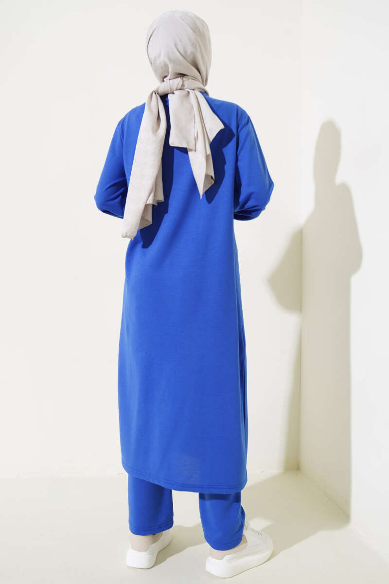 Kabartma Şeritli Taşlı Triko İkili Takım Nefti