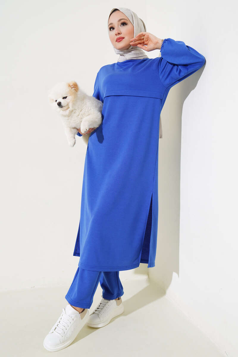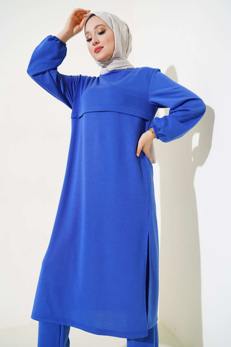 Önü Bağcık Detaylı Etekli İkili Takım Lacivert