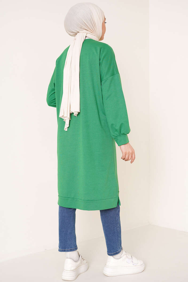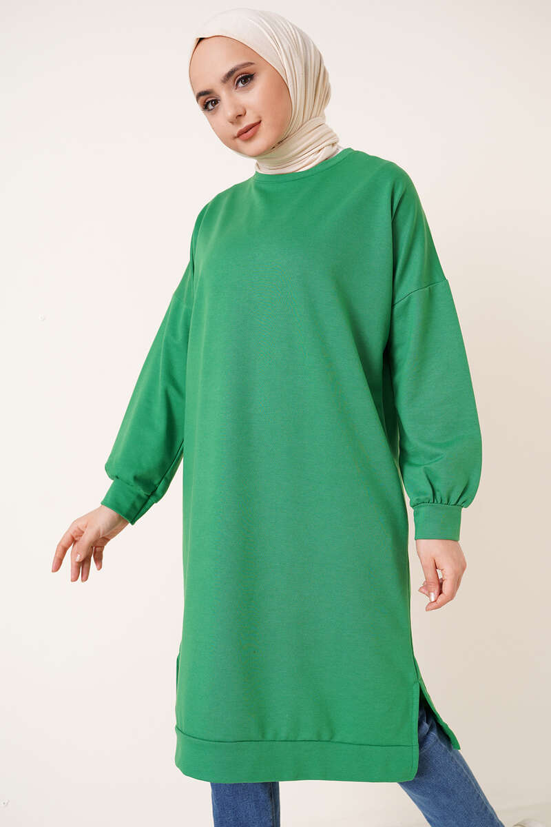 Yeni sezon tunik en çok tercih edilen boyuyla dikkat çekmektedir. Uzun tuniğimizin yanları yırtmaçlıdır. Kombinlerinizde tamamlayıcı bir parça olarak kullanabileceğiniz tuniğimiz bisiklet yakadır. Sade ve salaş bir görünüm sunan tuniğimiz düşük omuz modeldir.