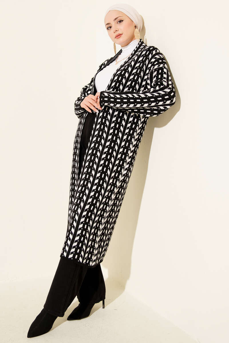 Selanik Örgülü Uzun Triko Hırka Petrol