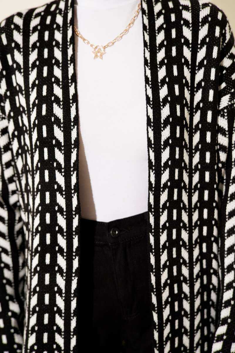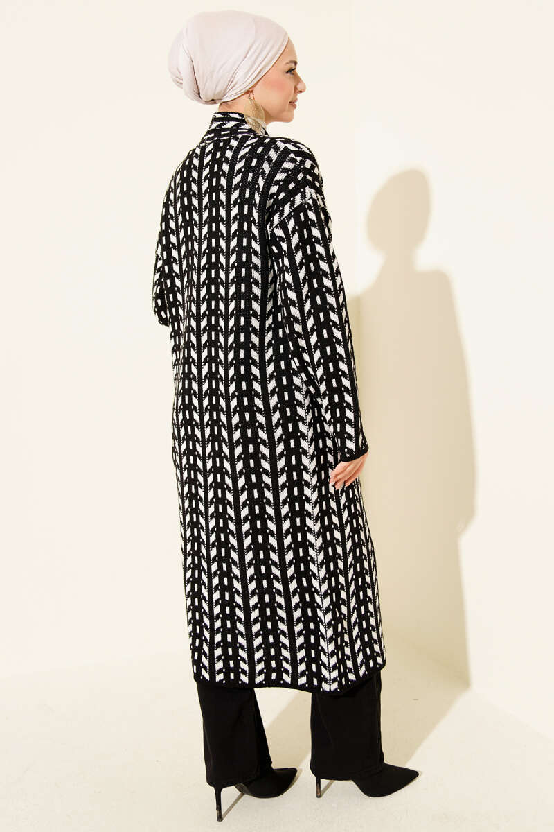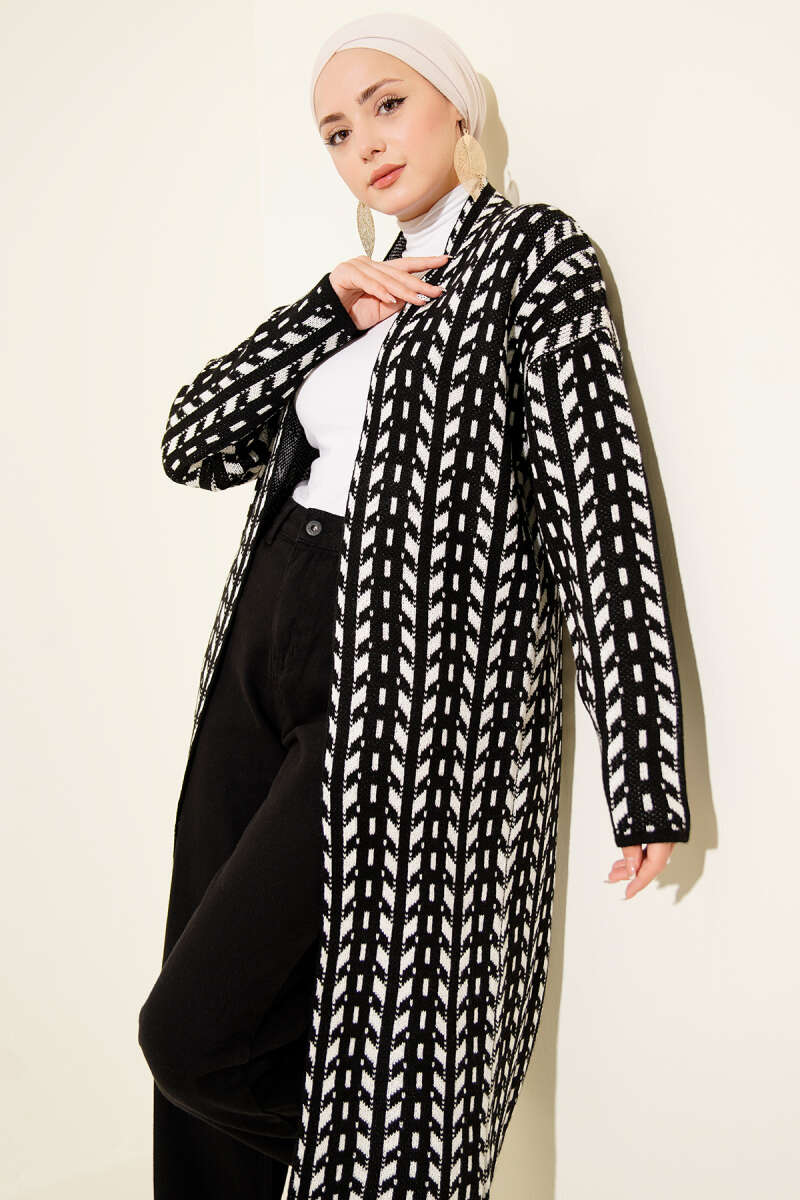 Zikzak Desenli Gold Düğmeli Triko Hırka Siyah