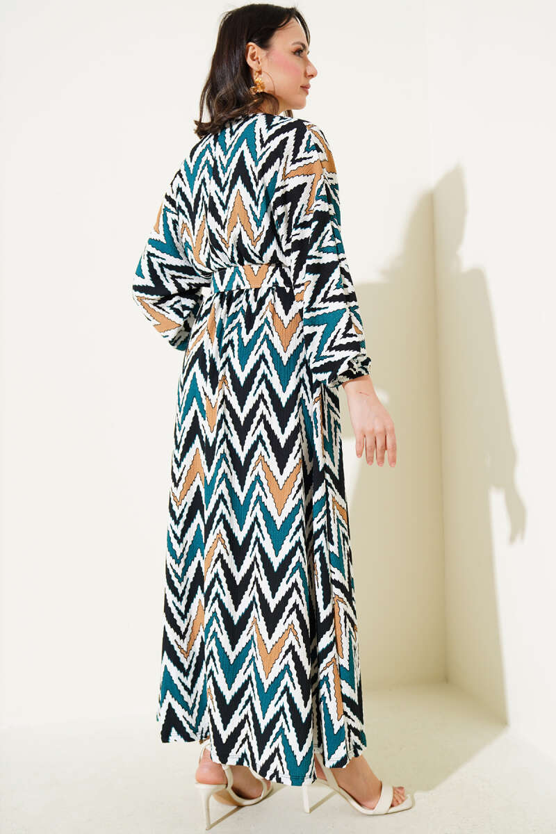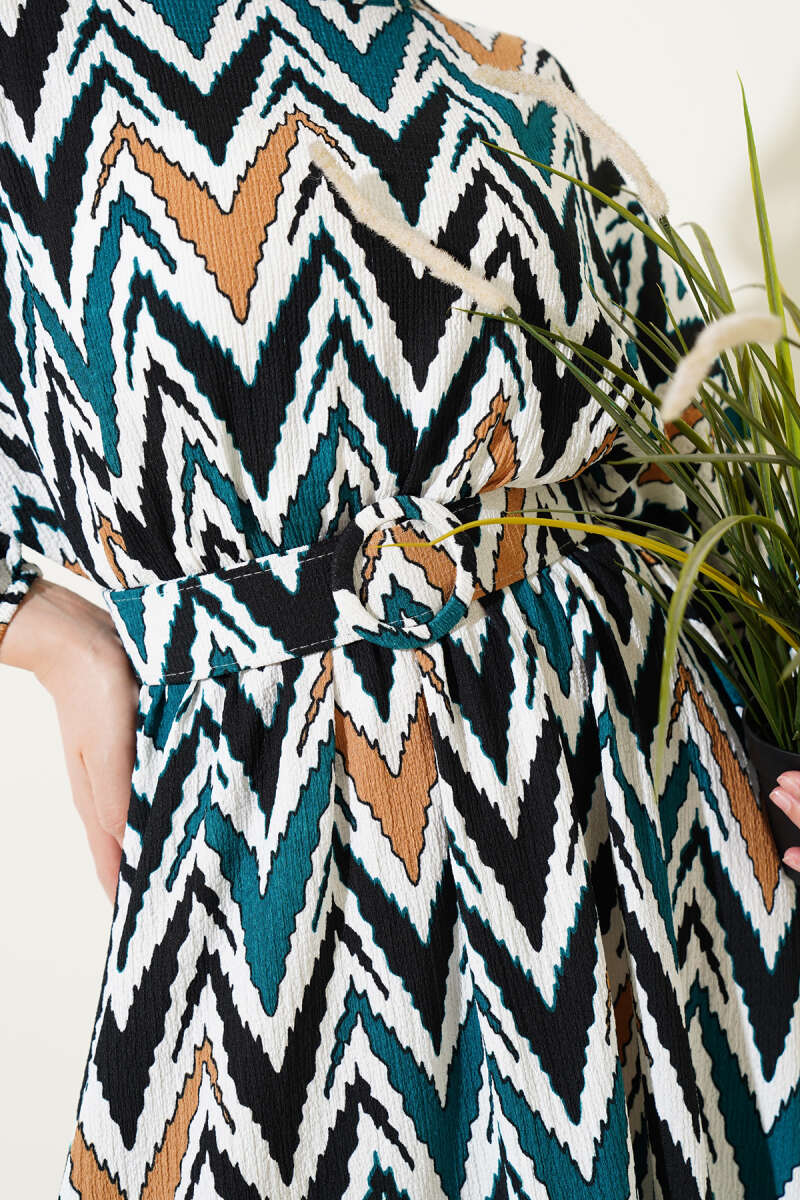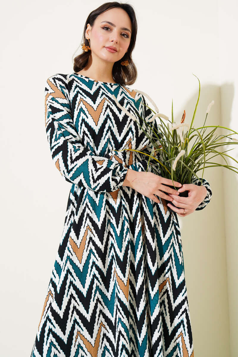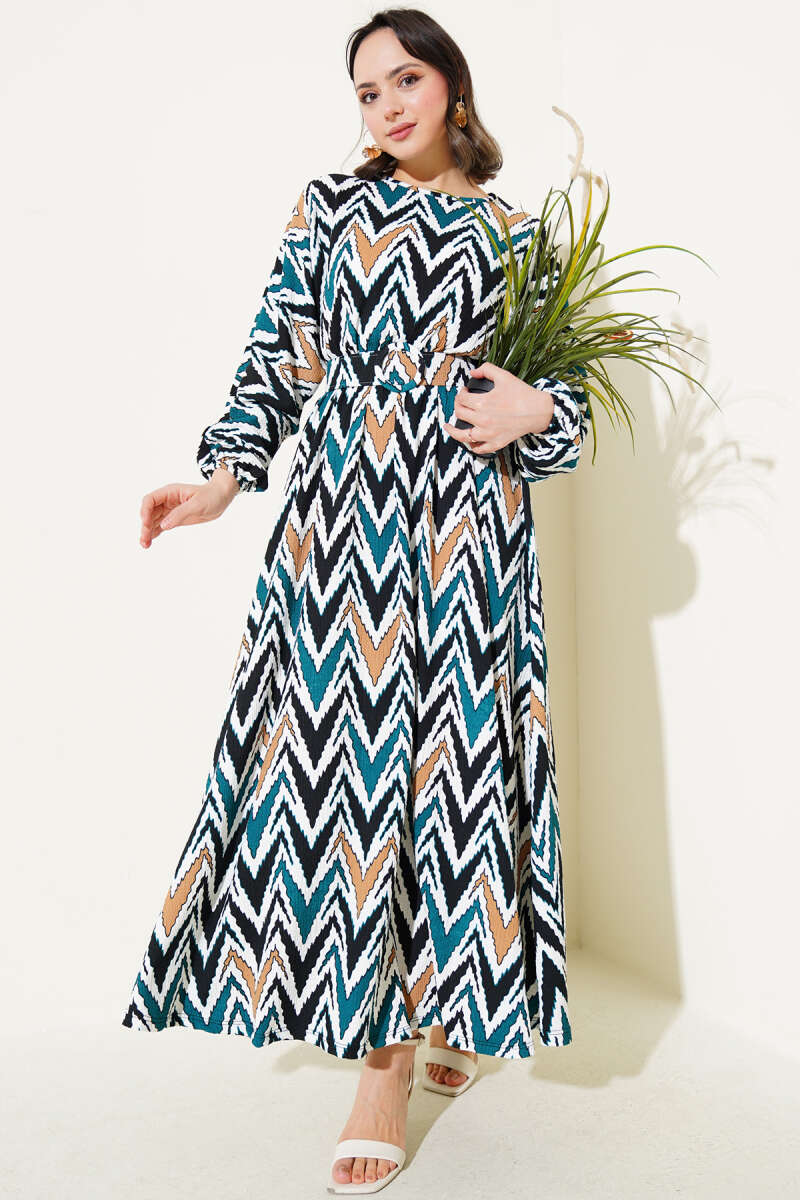 Paisley Desen Bel Lastikli Elbise Lacivert