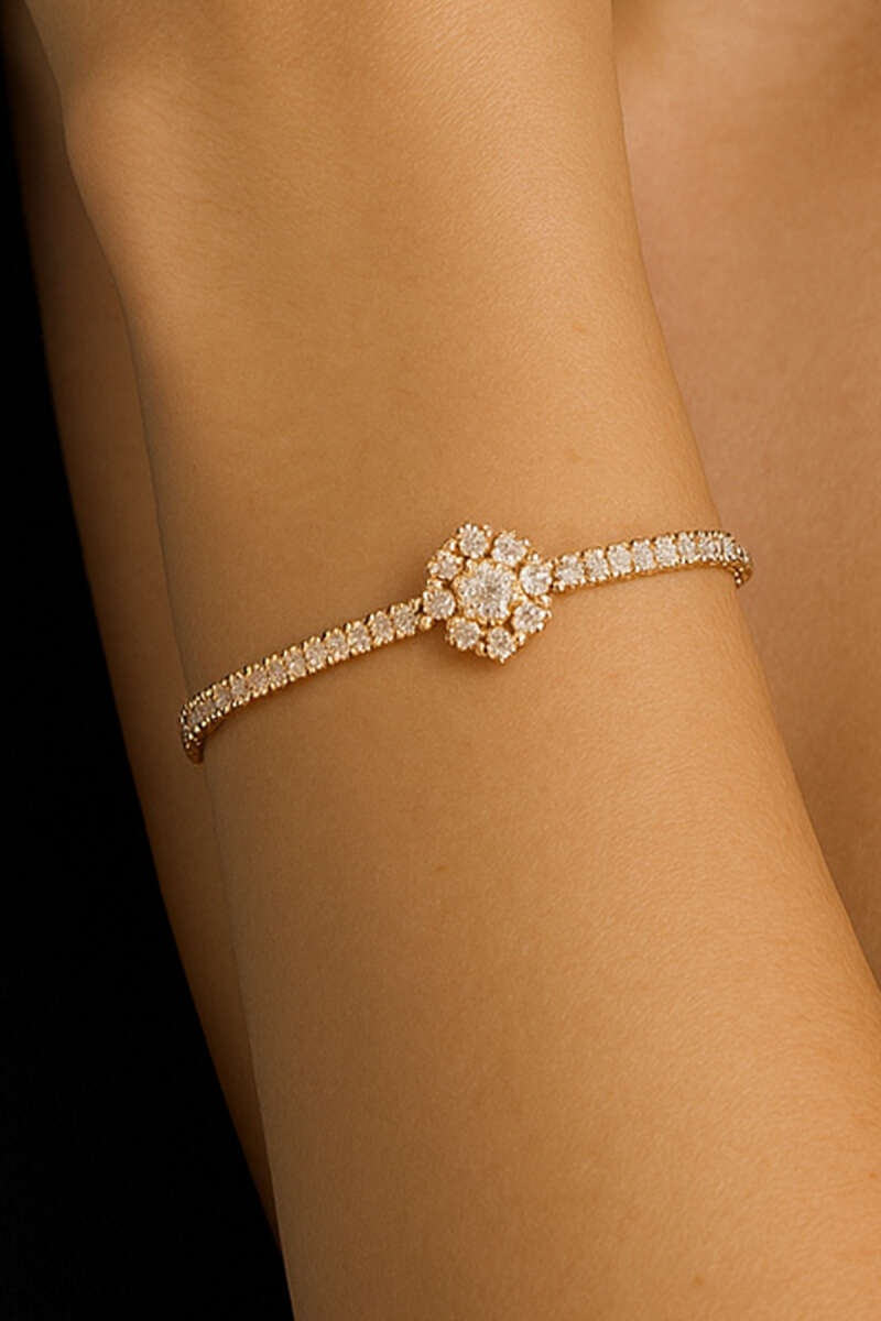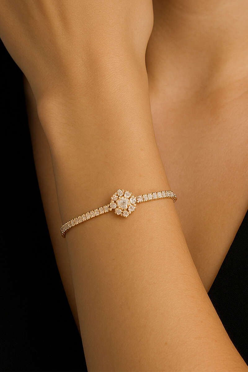 Çiçek Su Yolu Taşlı Bileklik Gold