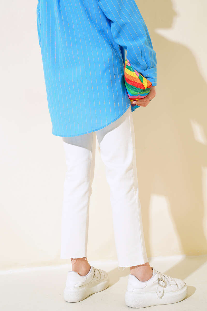 Yeni sezon pantolonumuz şık tasarımı ile çok seveceksiniz. Pantolonumuz yüksek beldir. Kemerli olup dört adet kemer köprüsü bulunmaktadır. Dört adet cebi olan pantolonumuzun cepleri aktif kullanılmaktadır. Paçası kesik olan pantolonumuz kombinlerinizin vazgeçilmezi olarak sizleri beklemektedir.