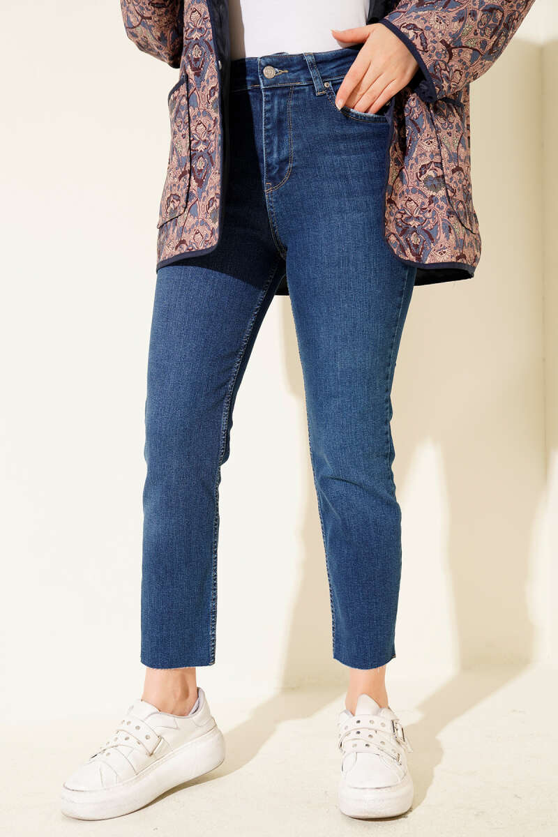 Yüksek Bel Boru Paça Kot Pantolon Füme