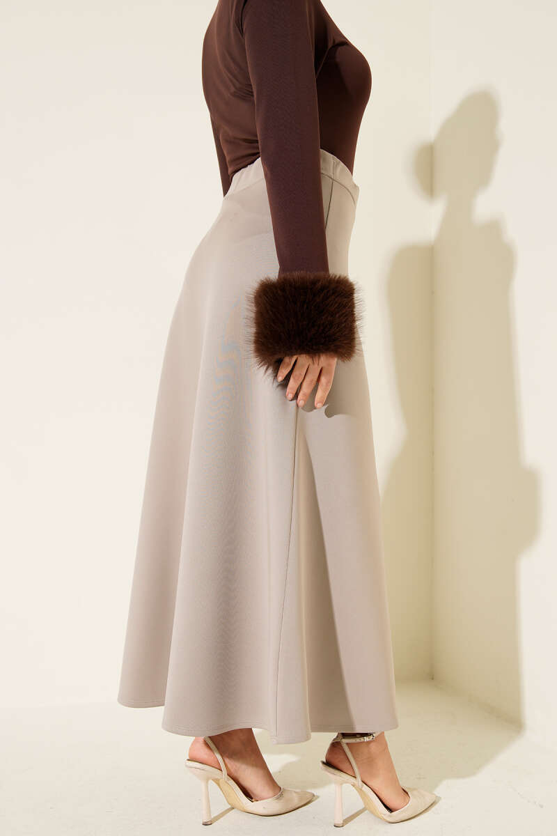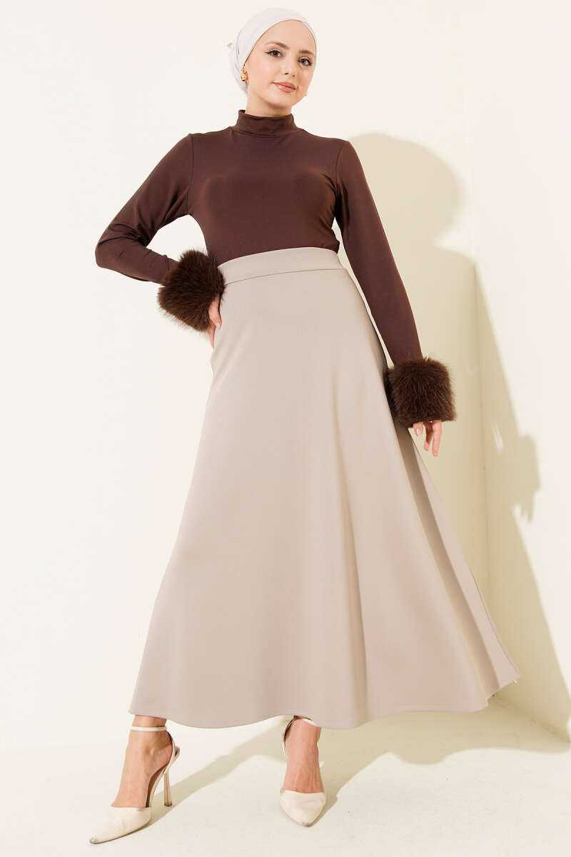 Yüksek Bel Çan Etek Bej