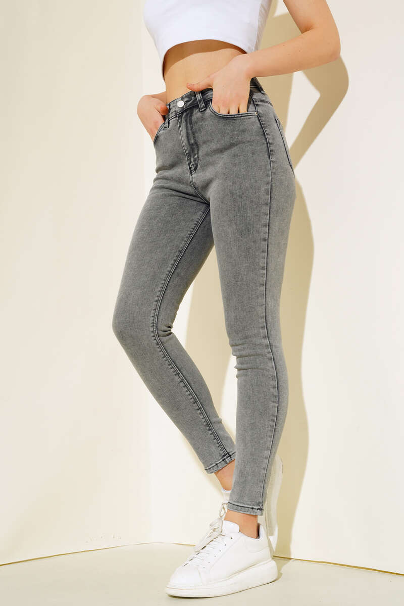 Yüksek Bel Dar Paça Kot Pantolon Kar Orta