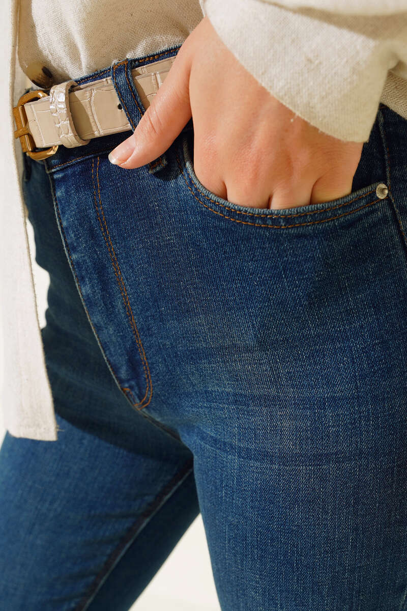 Yeni sezon kot pantolonumuzu çok beğeneceksiniz. Pantolonumuz yüksek bel modeldir. Dar paça olan pantolonumuz düğmeli ve fermuarlıdır. Beş adet kemer köprüsü bulunmaktadır. Biri küçük olmak üzere toplamda beş adet cebi bulunmaktadır. Kombinlerinize çok yakışacak olan pantolonumuz dolaplarınızda yerlerini beklemekte