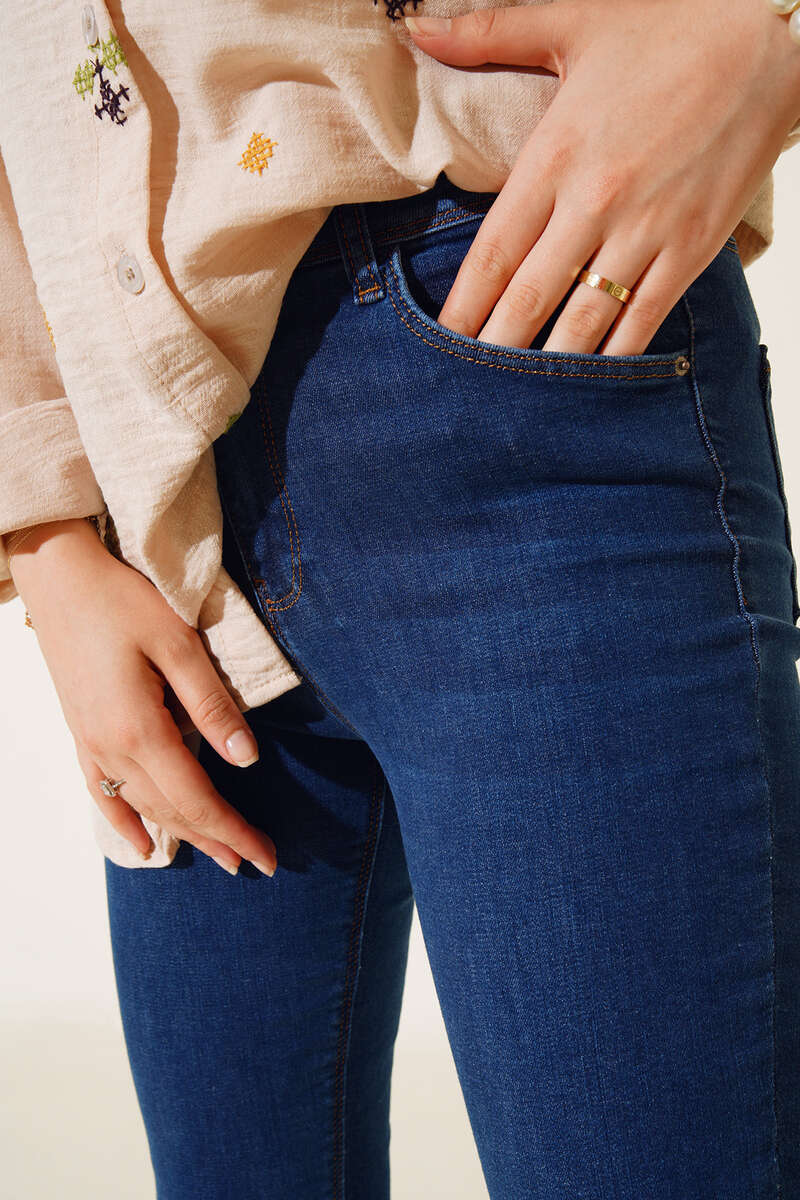 Yeni sezon kot pantolonumuz yüksek bel dar paça yapısıyla bacaklarınıza tam oturacaktır. Bel kısmında 5 kemer köprüsü bulunmaktadır. Pantolonumuzun yanlarında ve arkasında cepler bulunmaktadır.