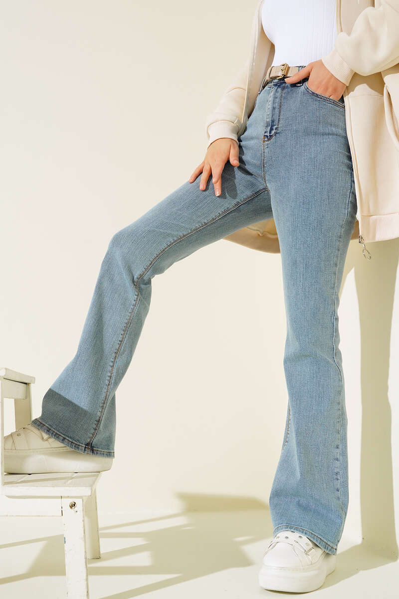 Yüksek Bel İspanyol Paça Pantolon Kar Yıkama